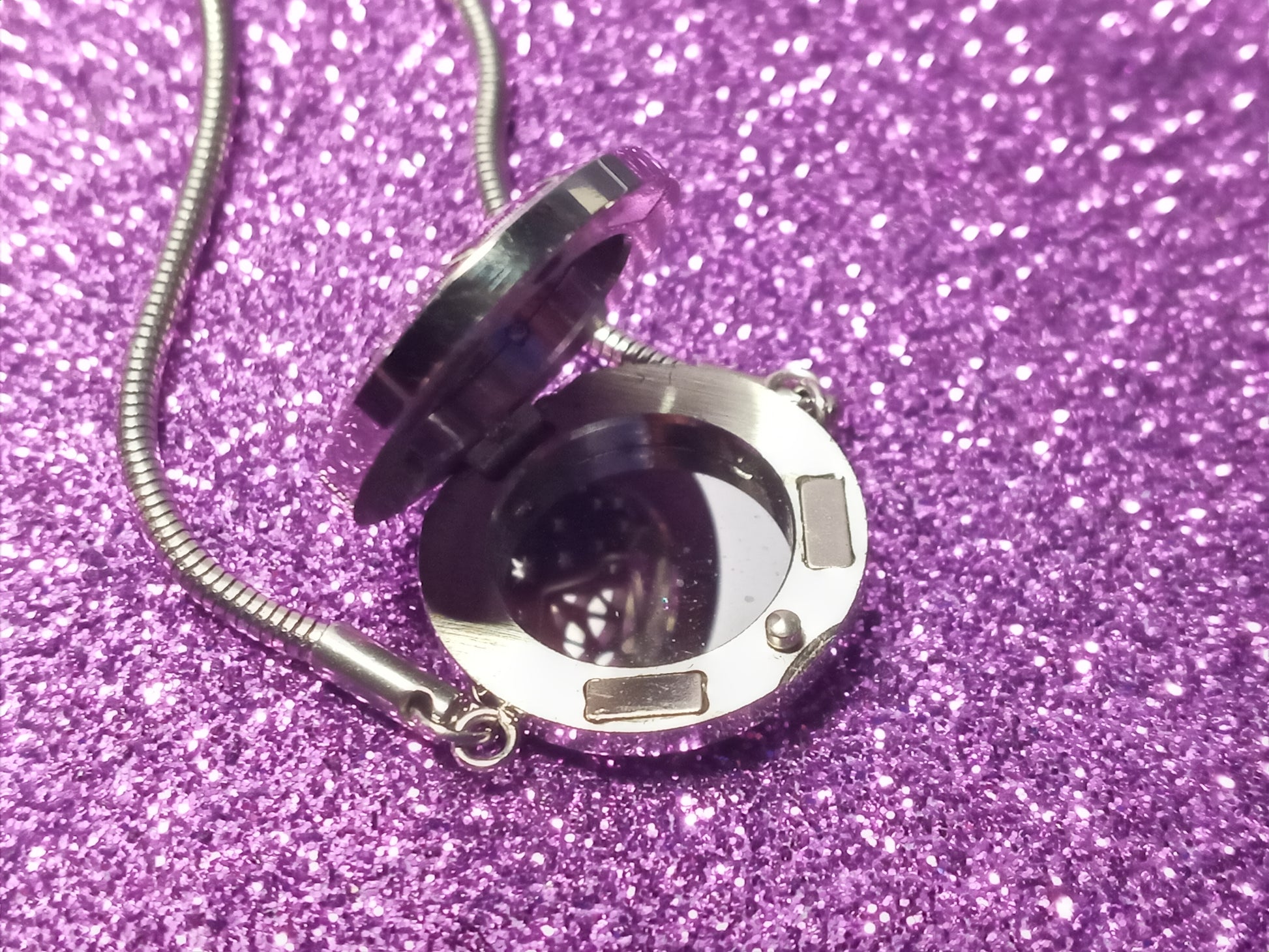 Included with the bracelet are three 17 mm felt pads for you to use with essential oils and a glitter foam pad for decorative purposes only in case you want to wear the bracelet without using essential oils. You can also take out the pad and use it without one, the interior is as reflective as a mirror.