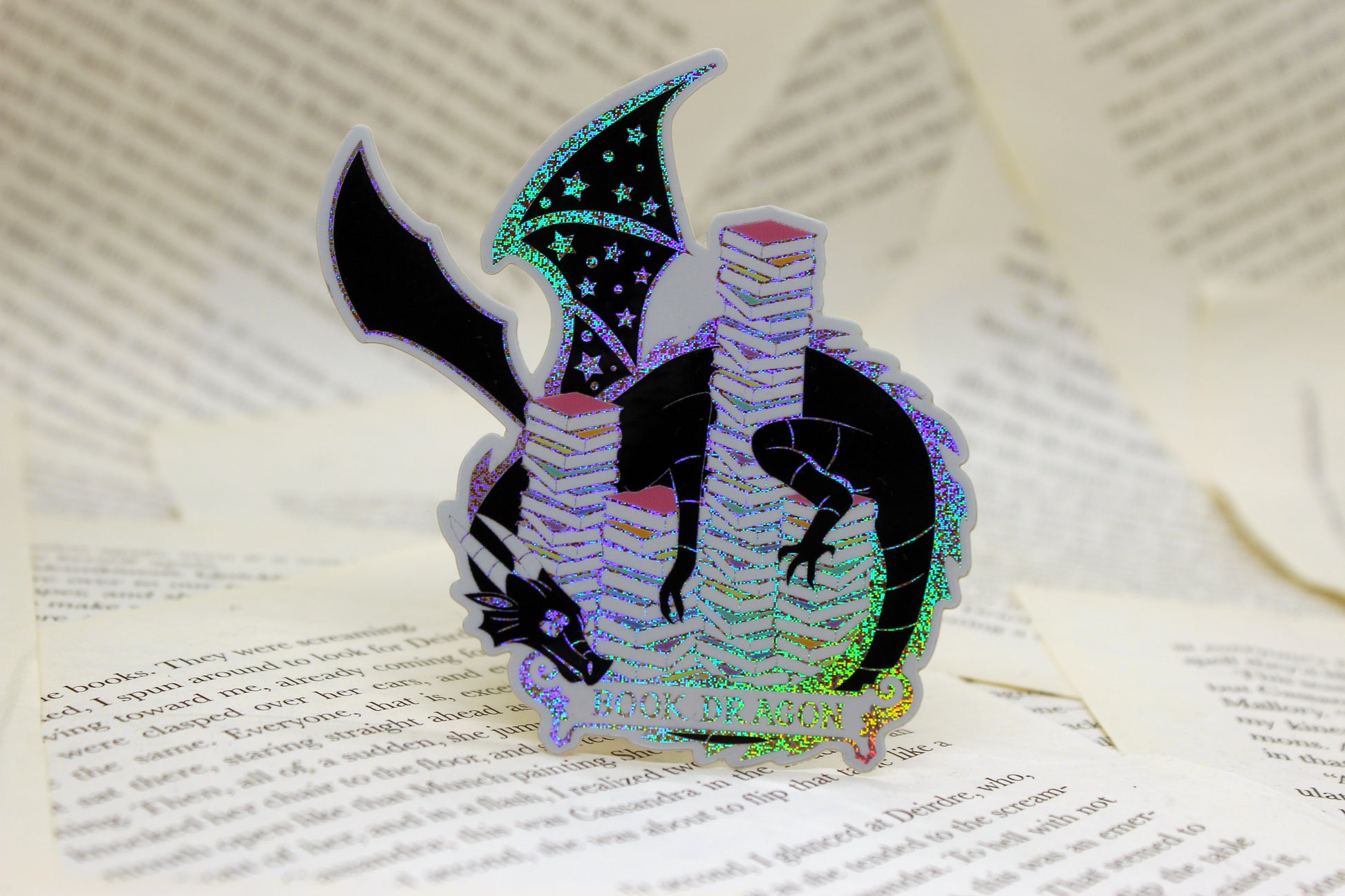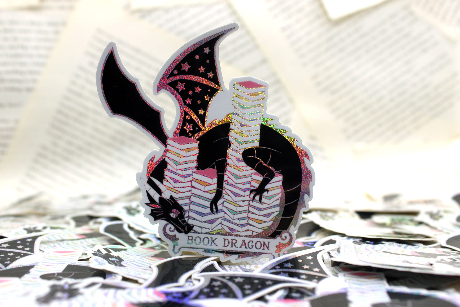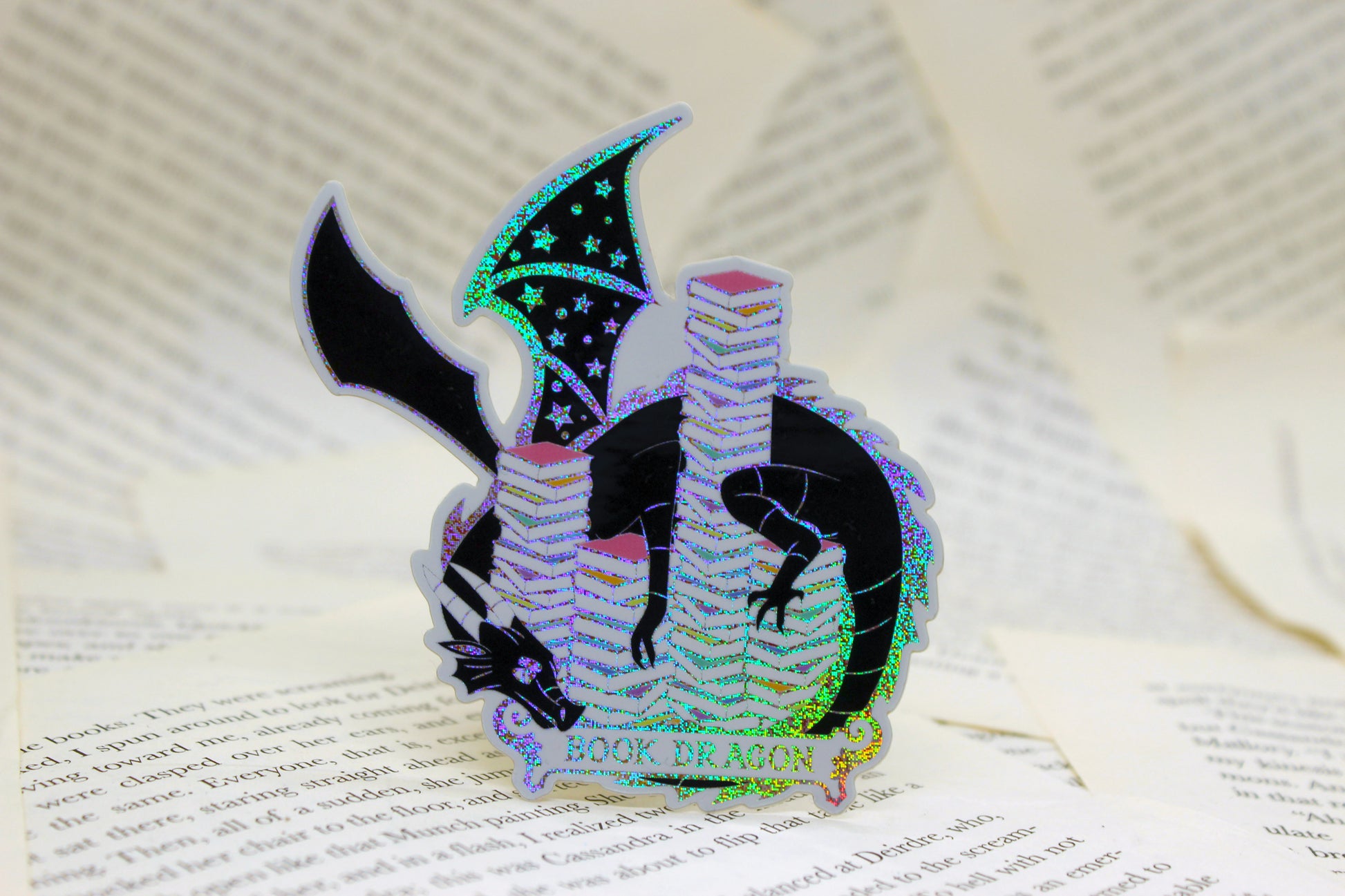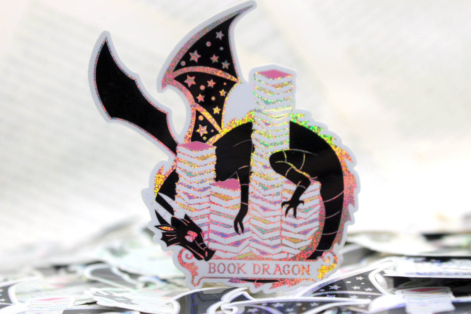 Summon your inner book dragon with this stunning holographic vinyl sticker!