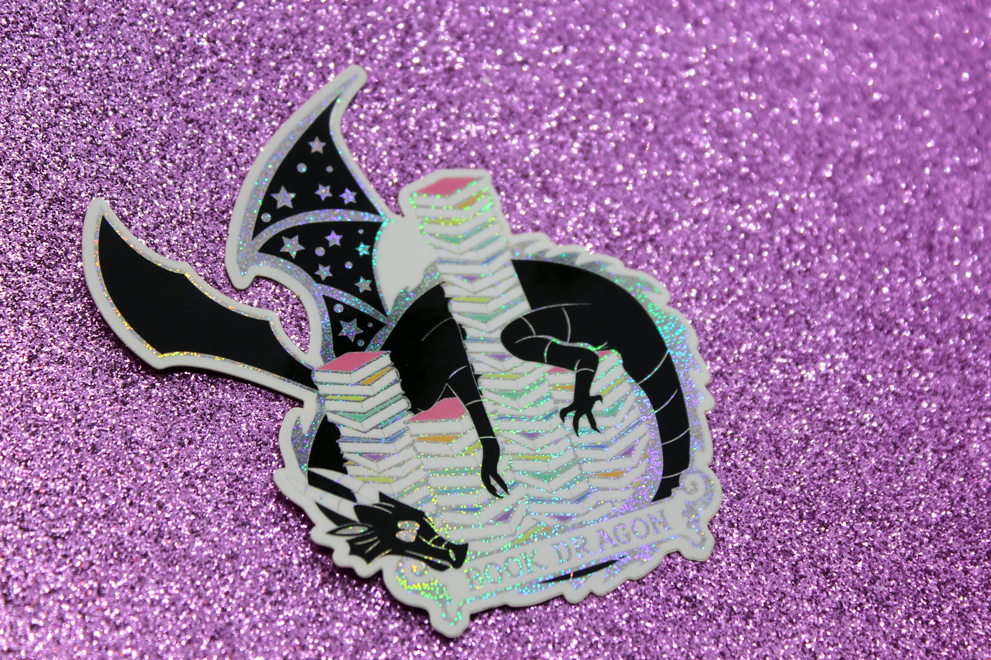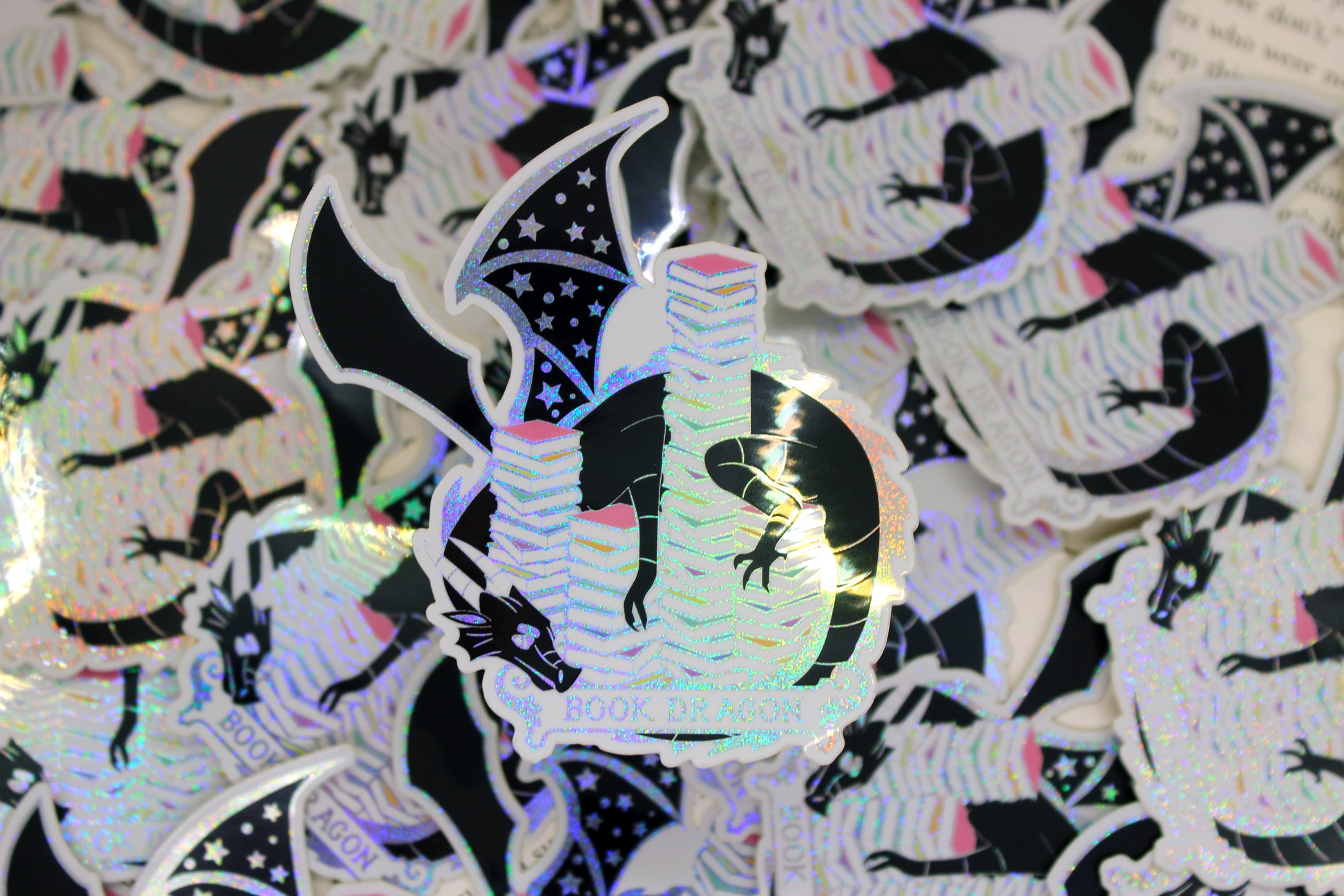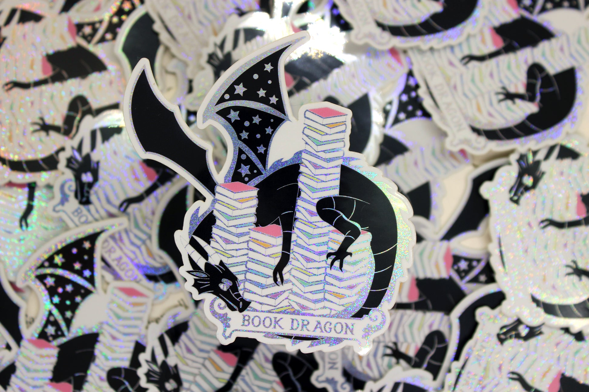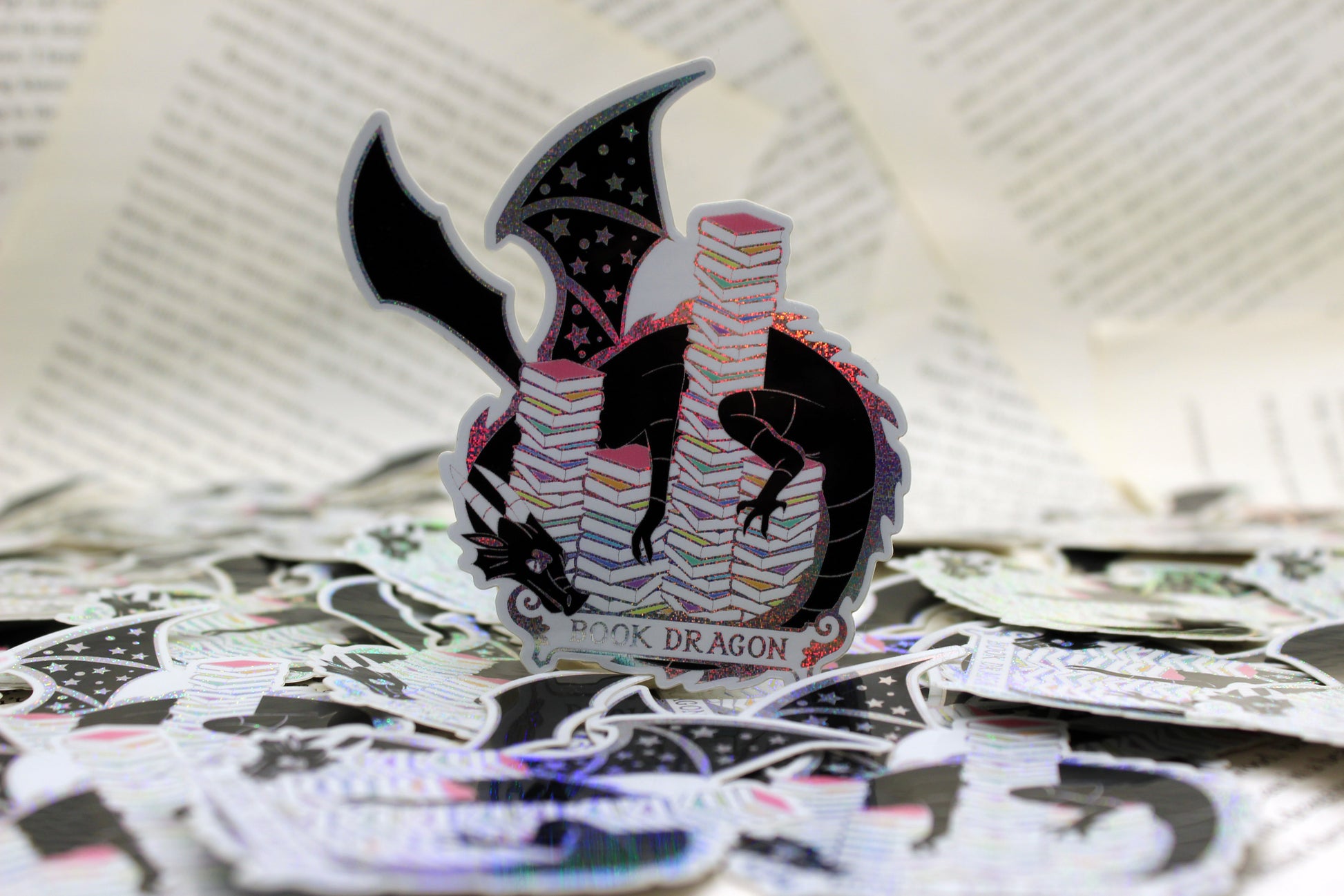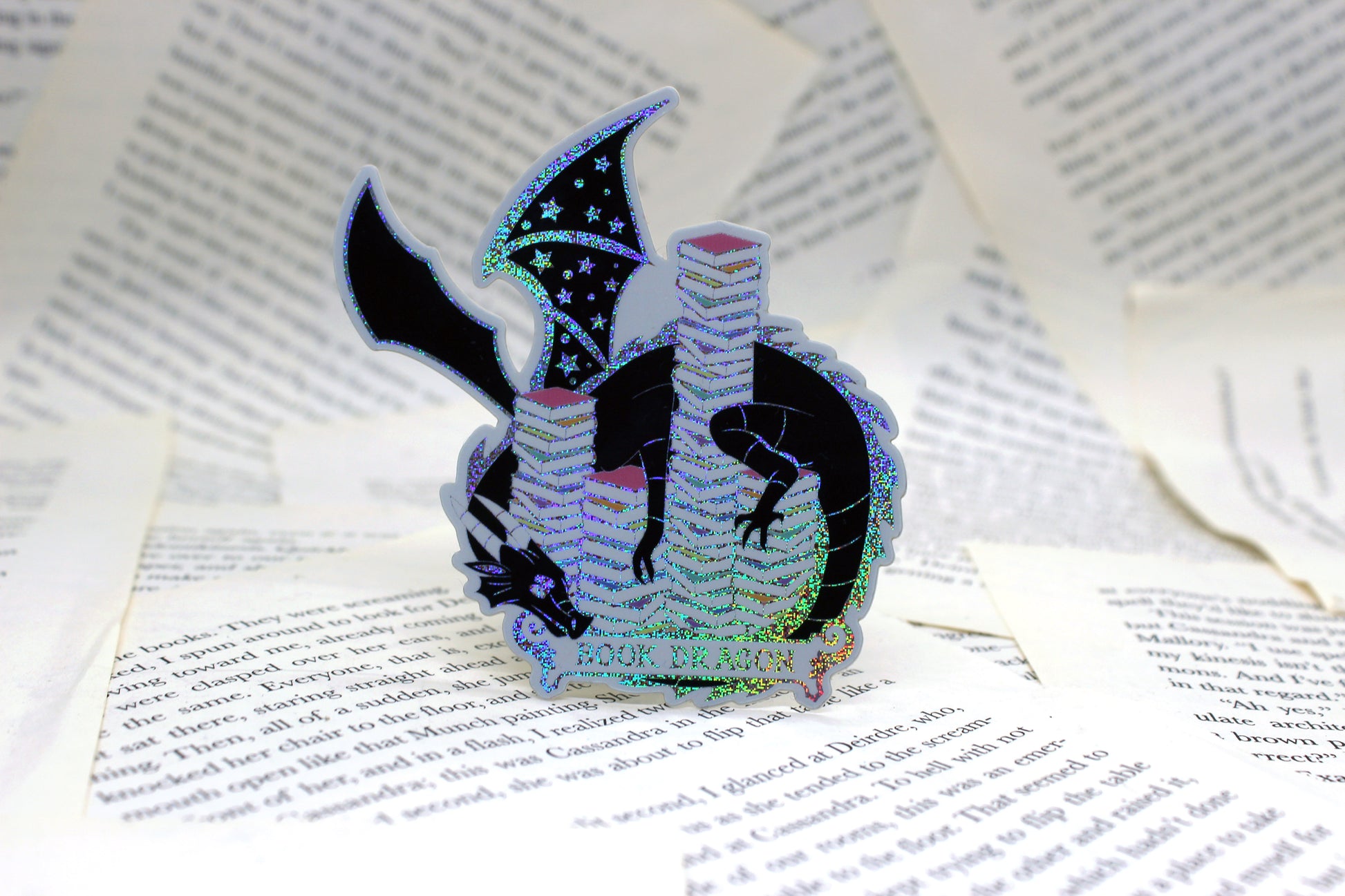 Summon your inner book dragon with this stunning holographic vinyl sticker!