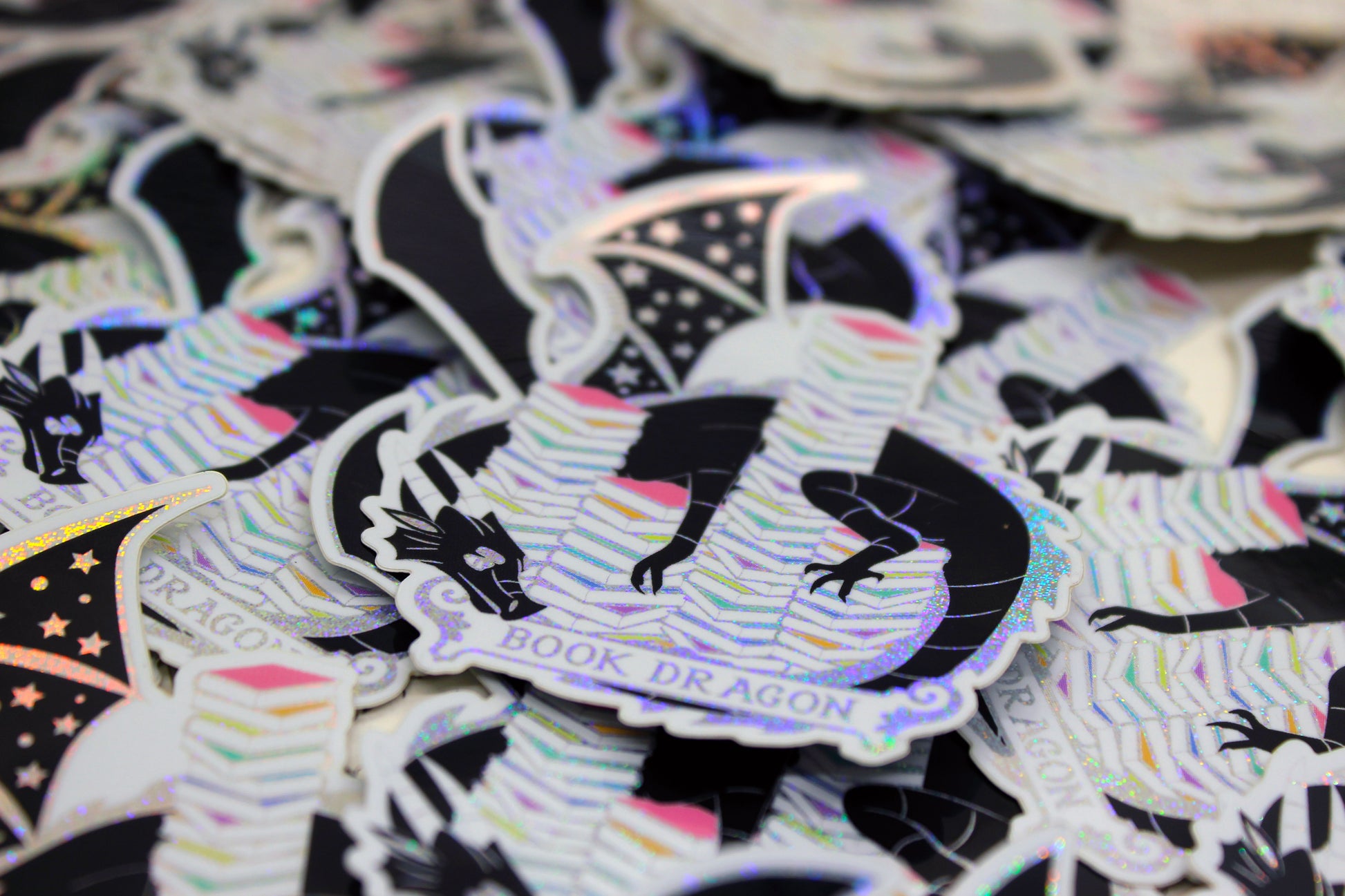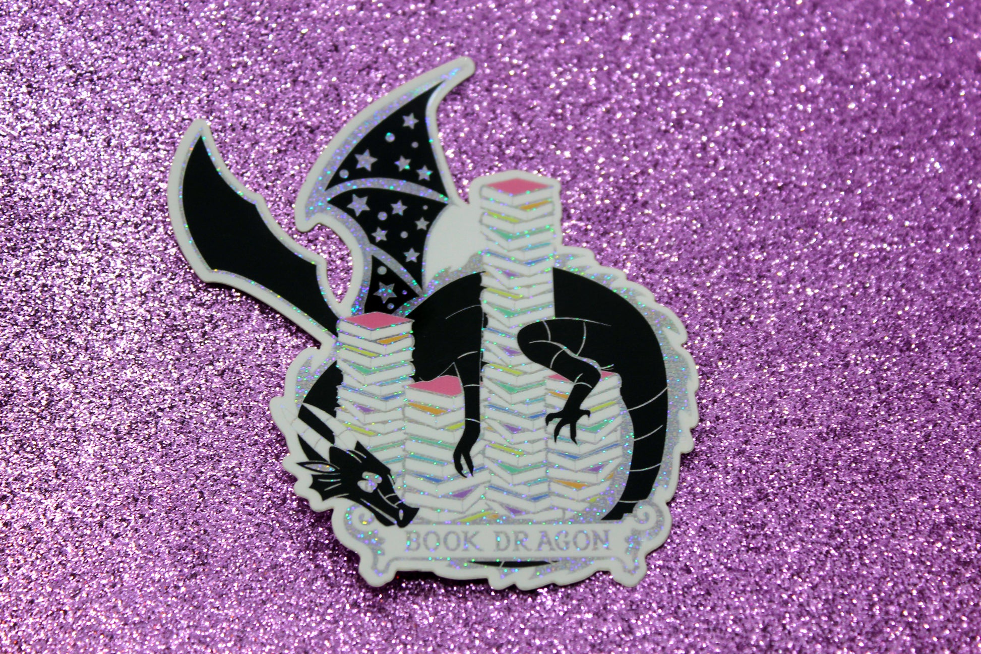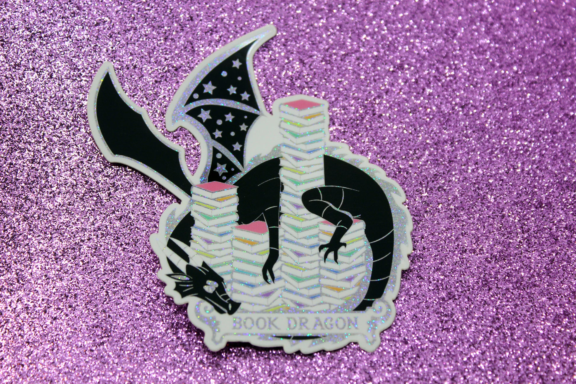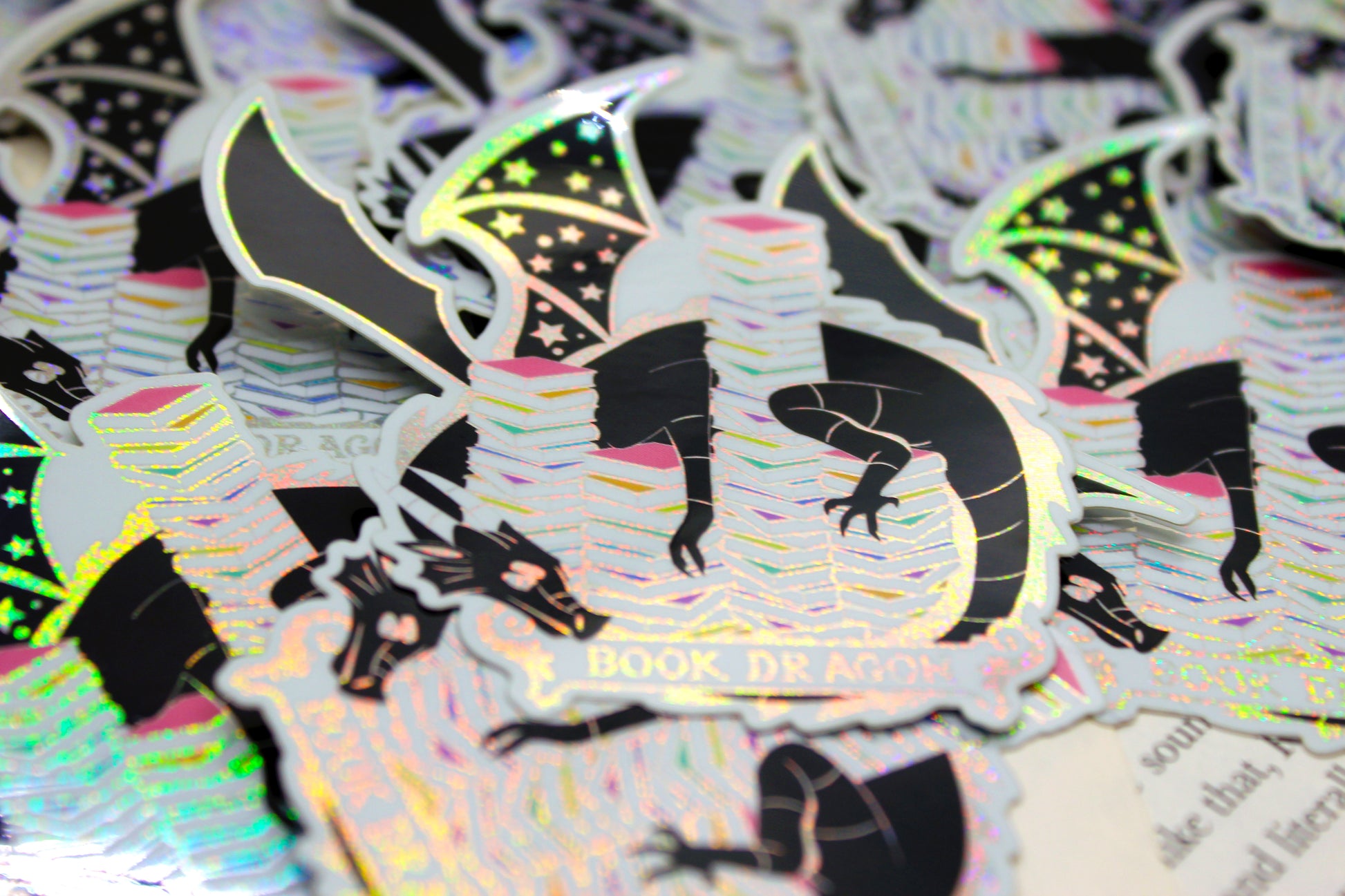 Summon your inner book dragon with this stunning holographic vinyl sticker!