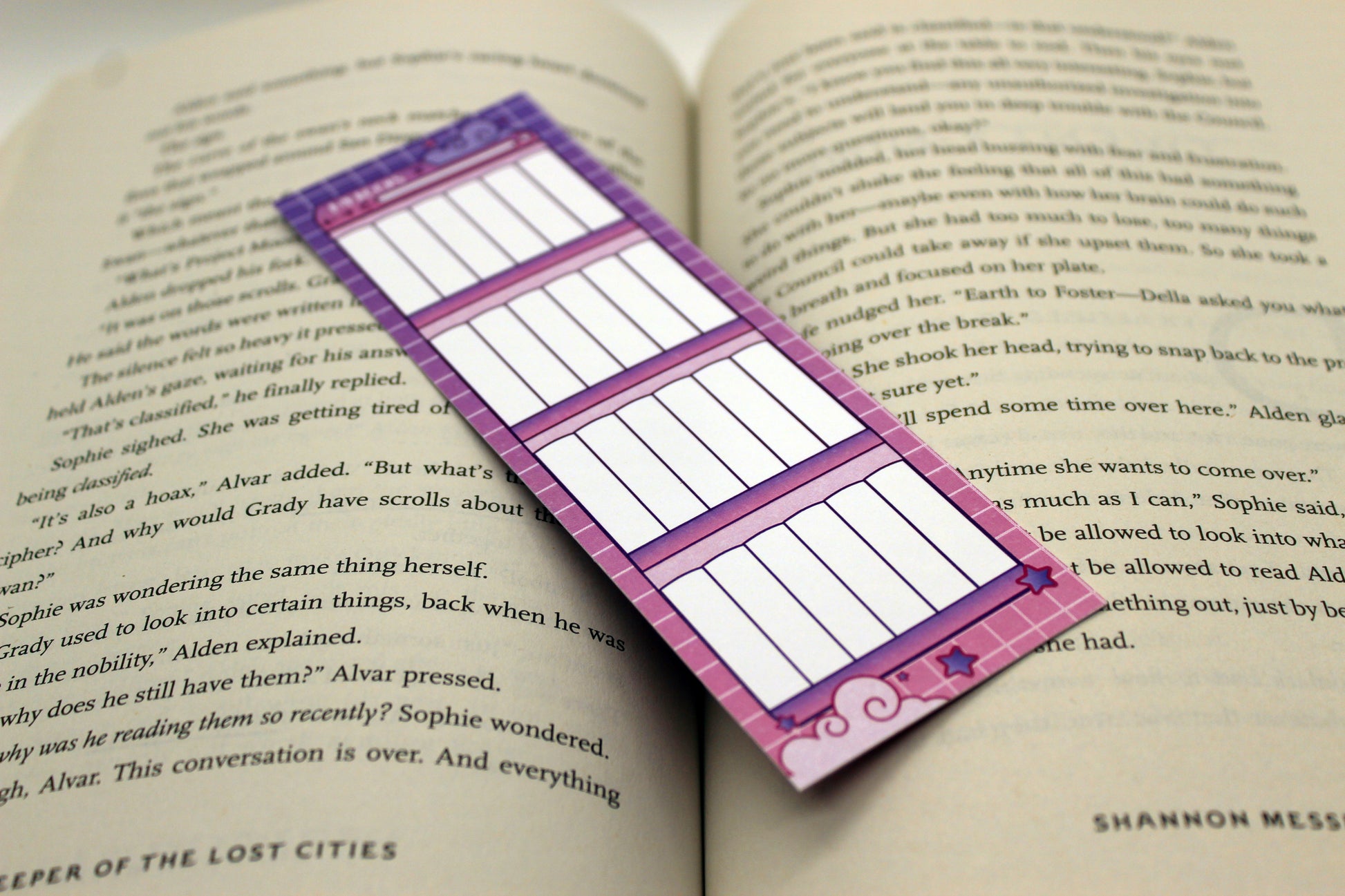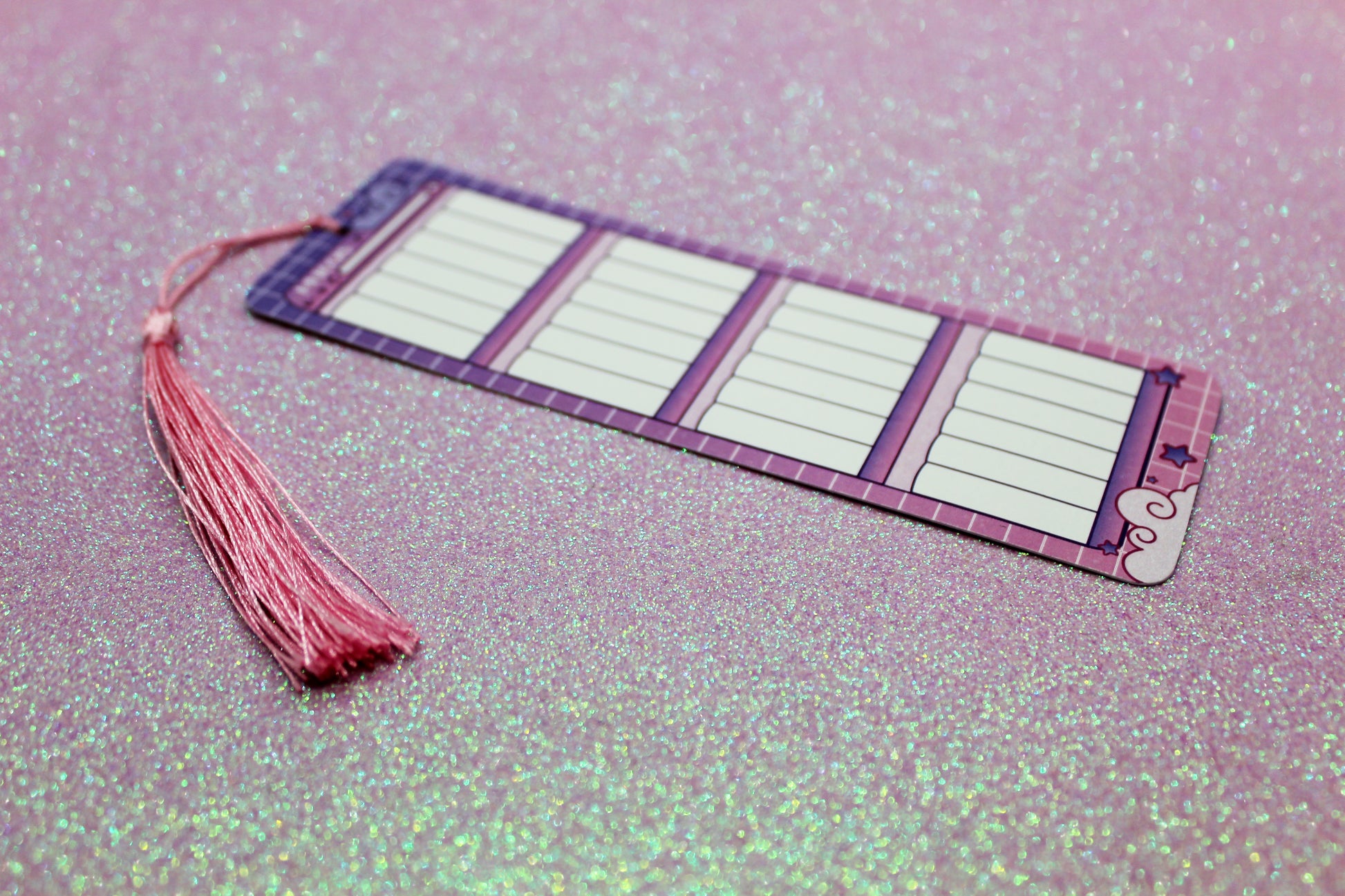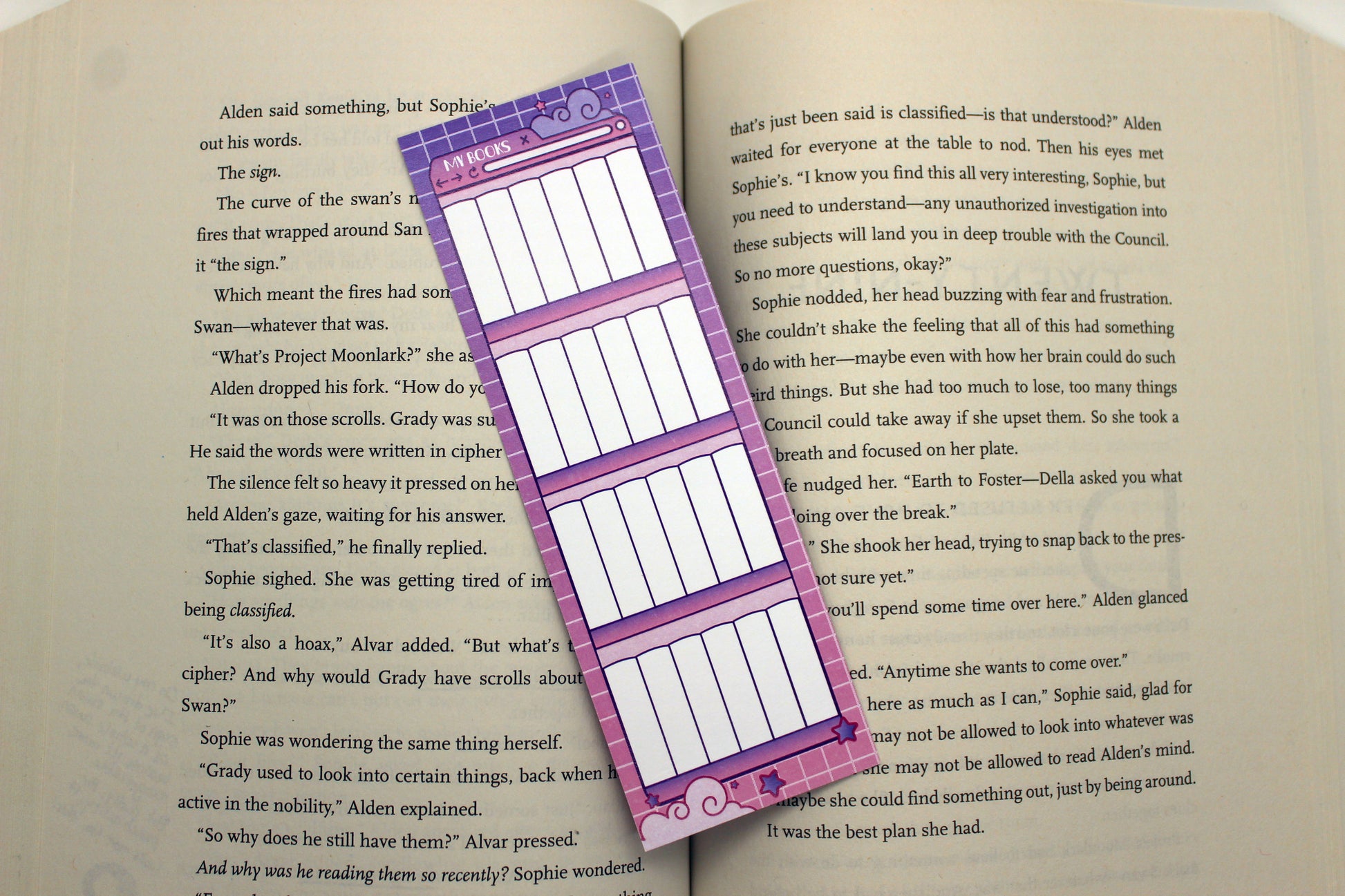 Stay organized and stylish with this fillable reading tracker bookmark!