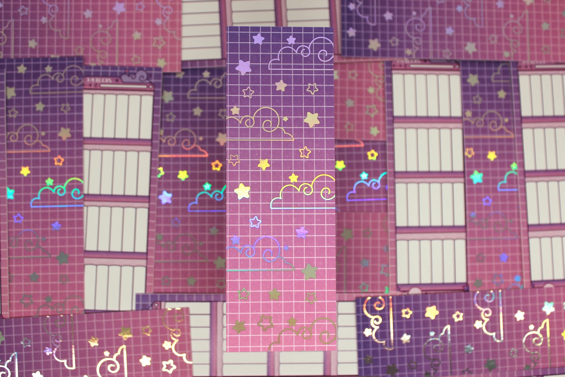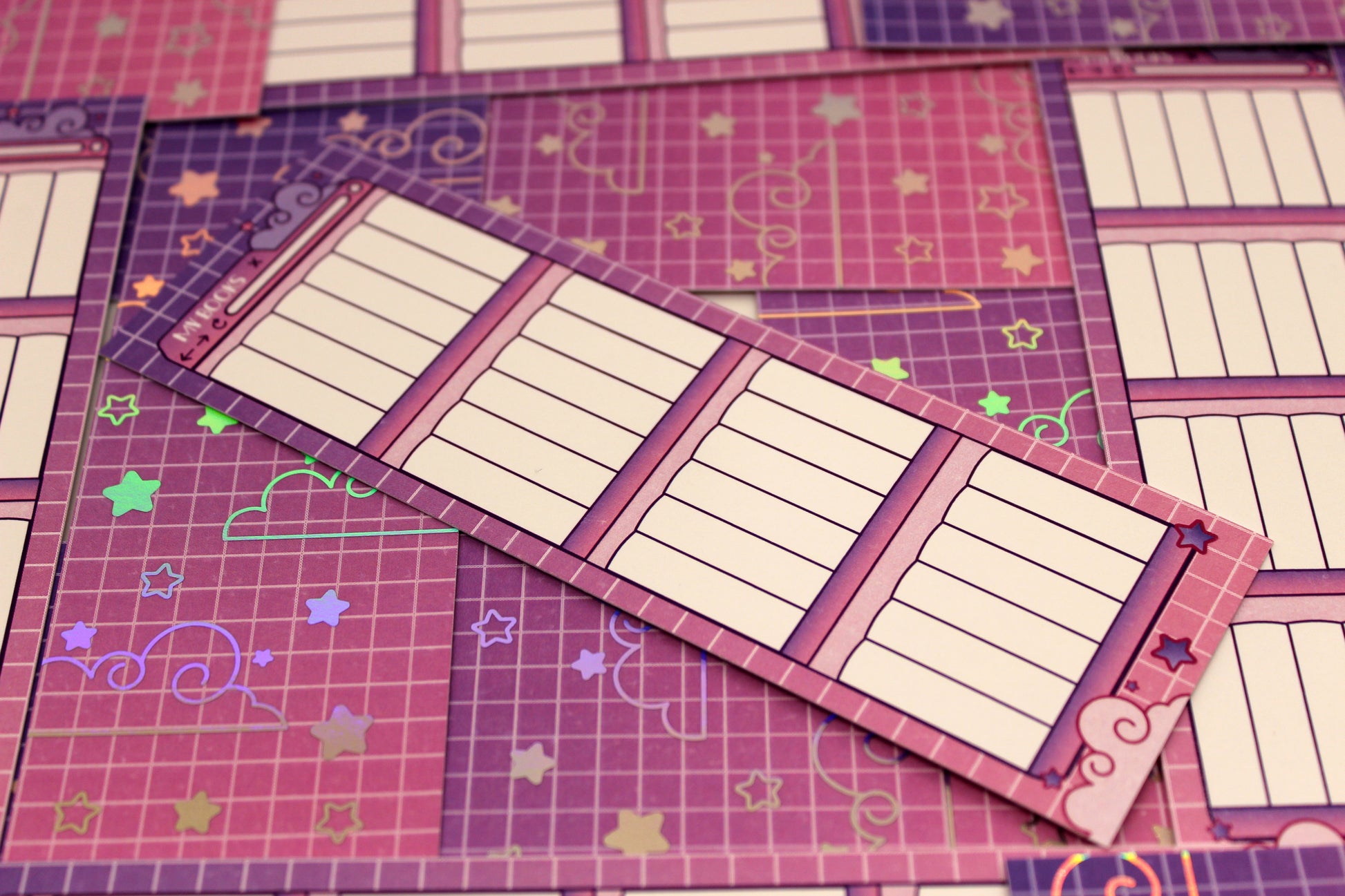 Perfect for readers who love keeping track of their TBR, current reads, or monthly goals – all while enjoying a shimmering holographic pink & purple design.