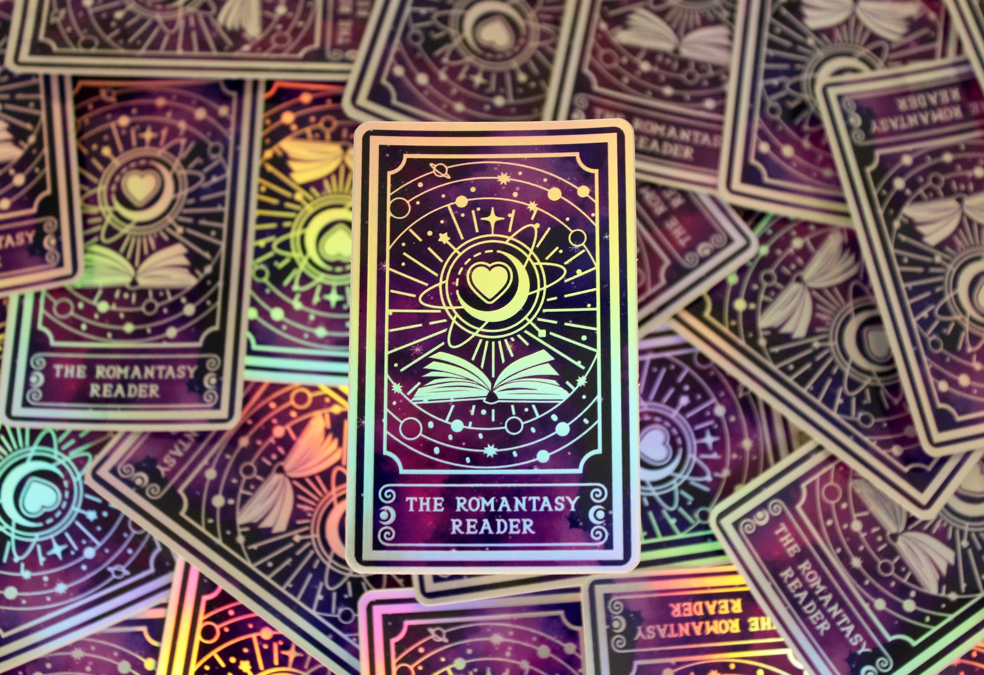 Holographic Book Genre Tarot Sticker 'The Romantasy Reader' – Book Lover Vinyl Decal
