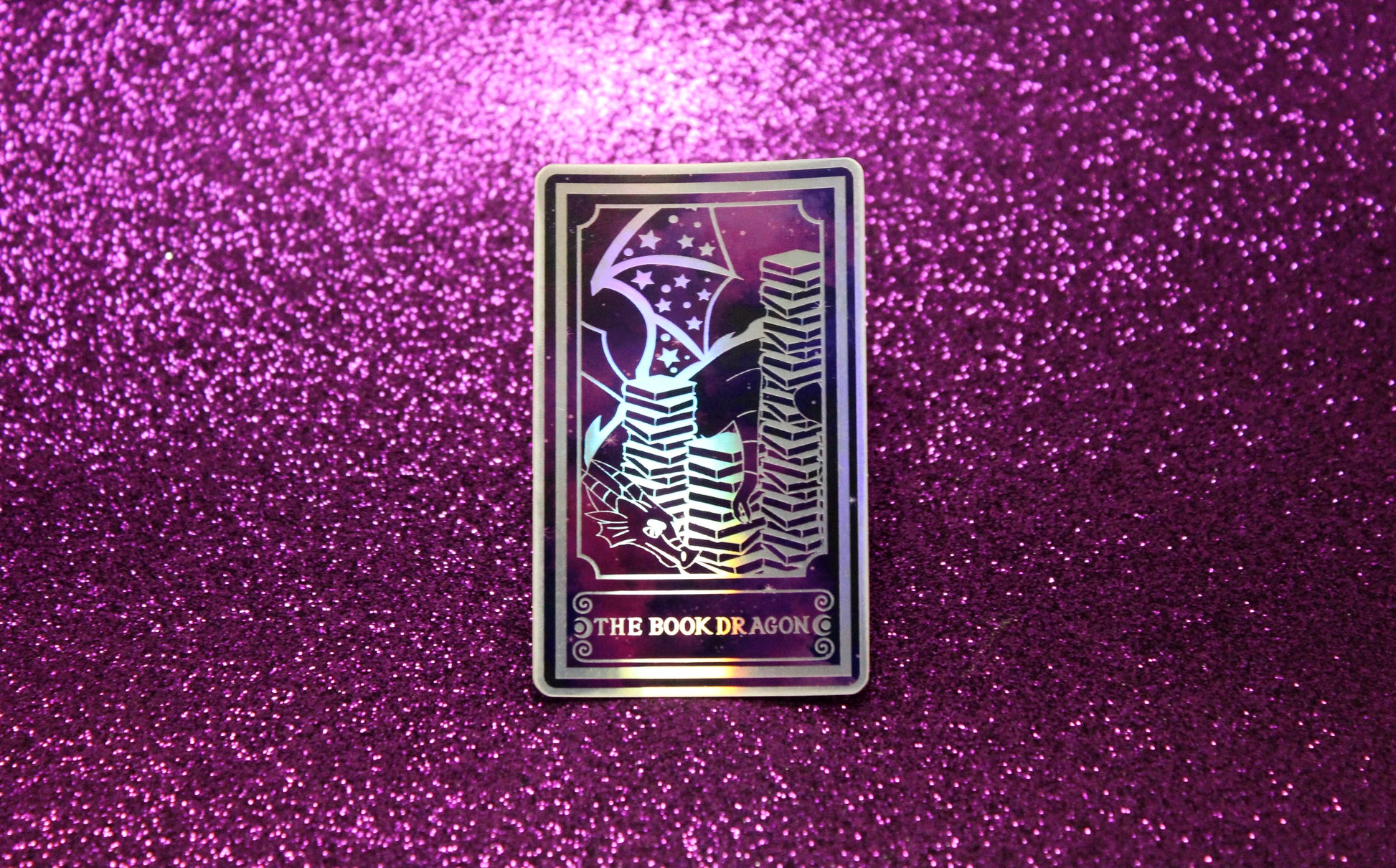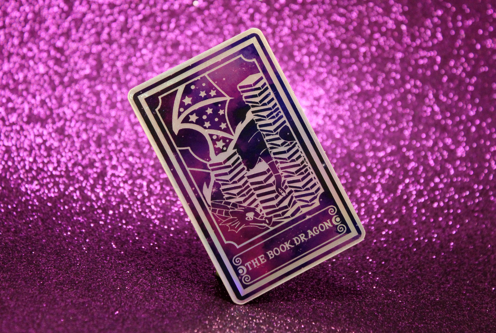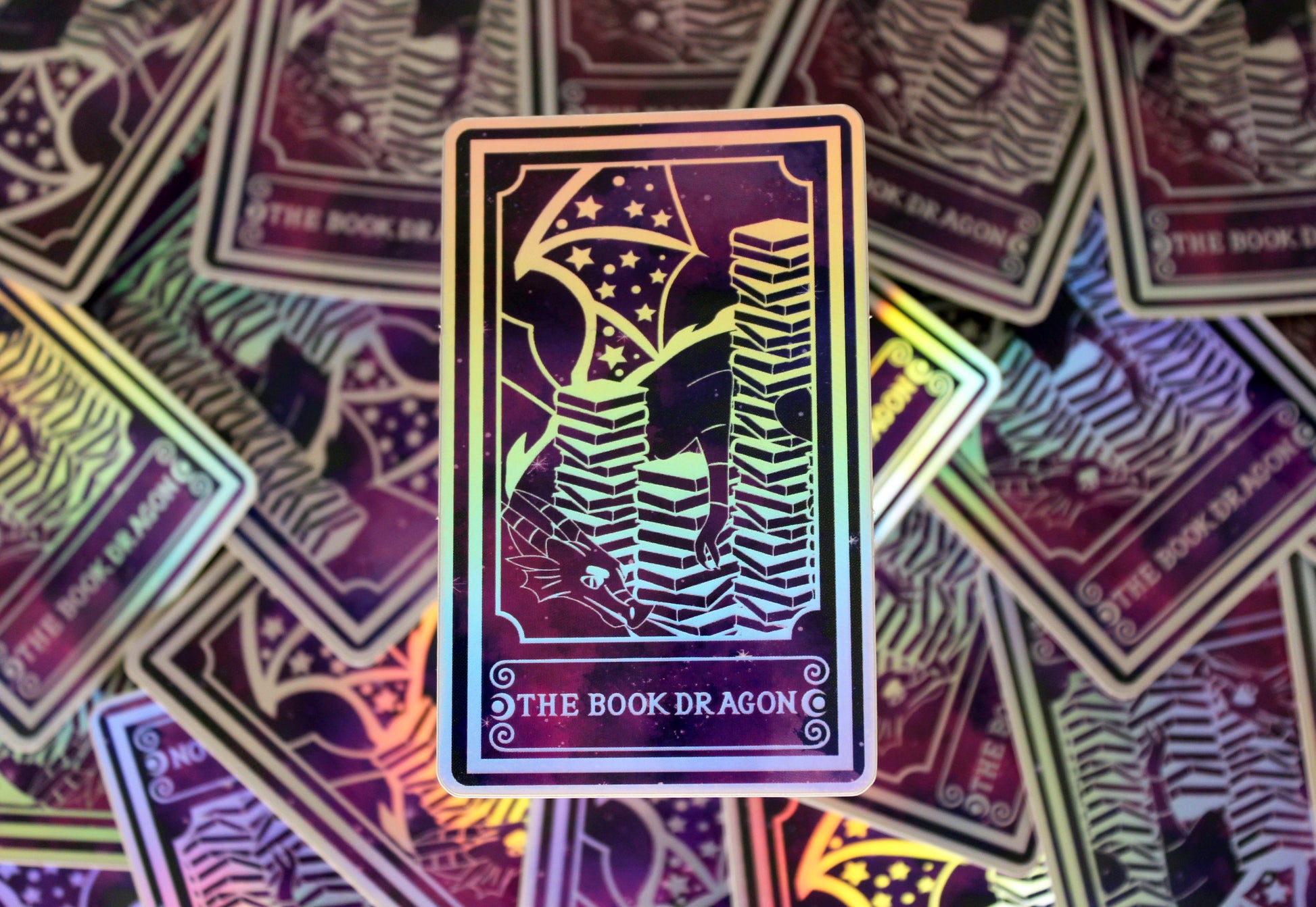 Holographic Dragon Tarot Sticker 'The Book Dragon' – Book Lover Vinyl Decal