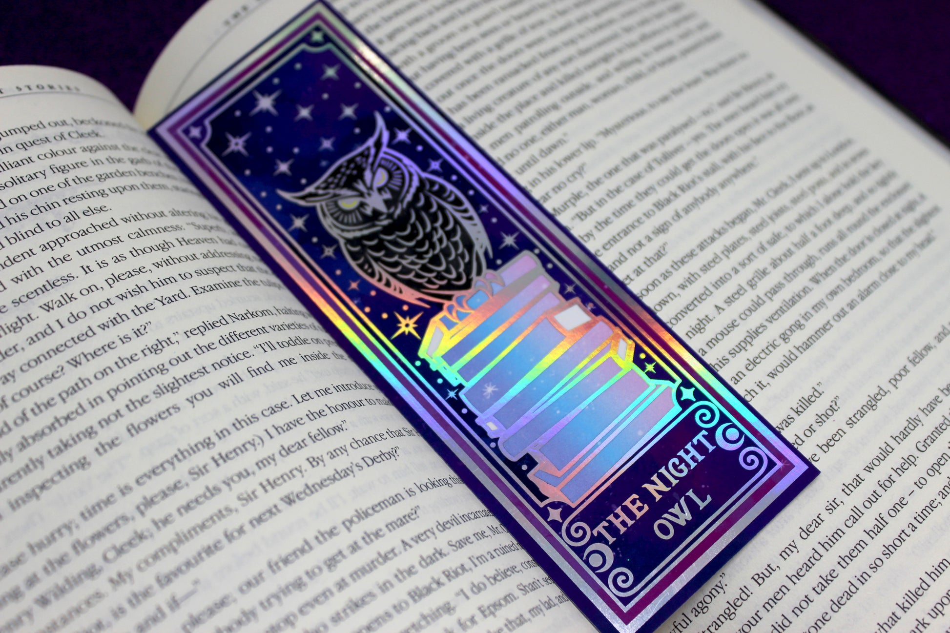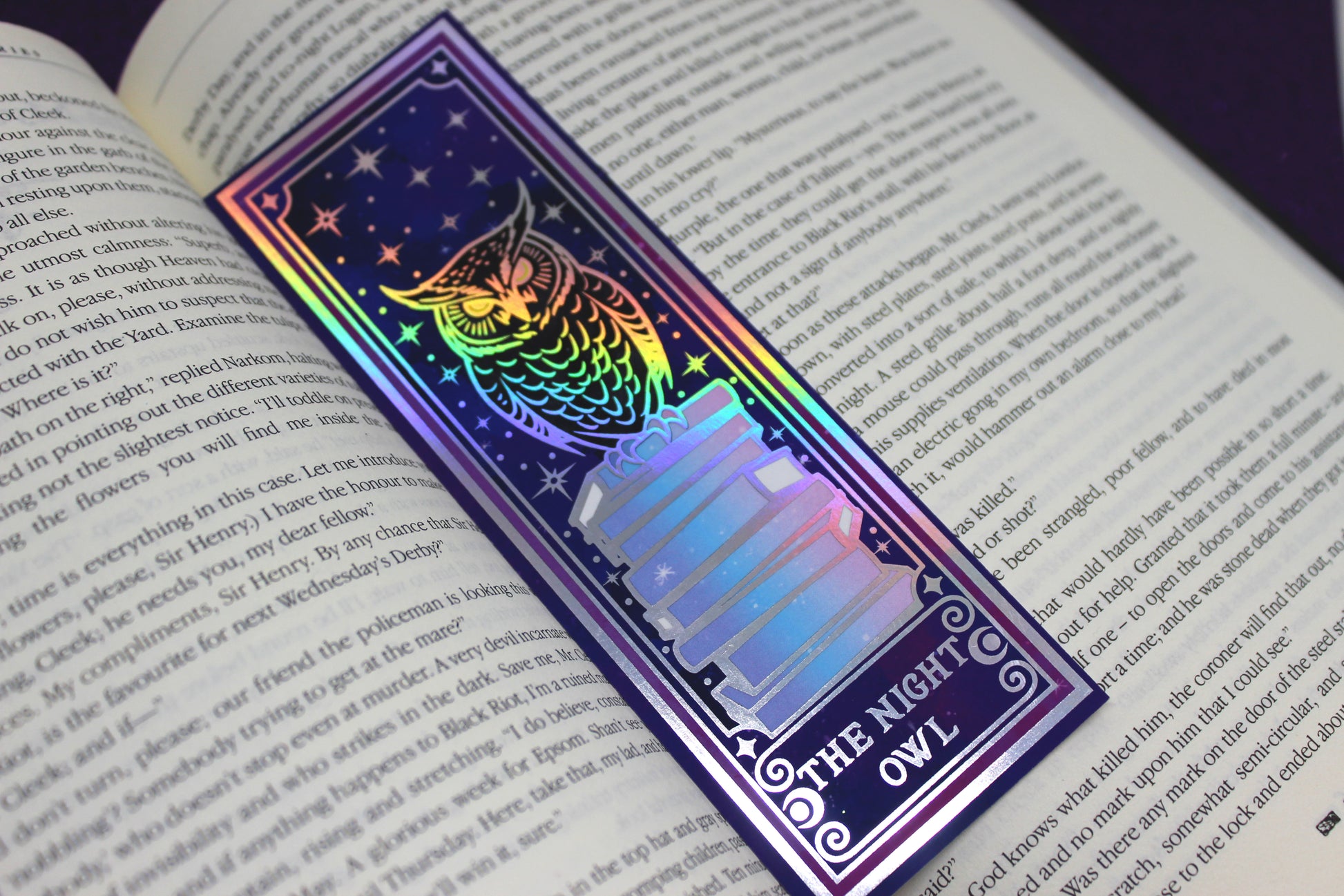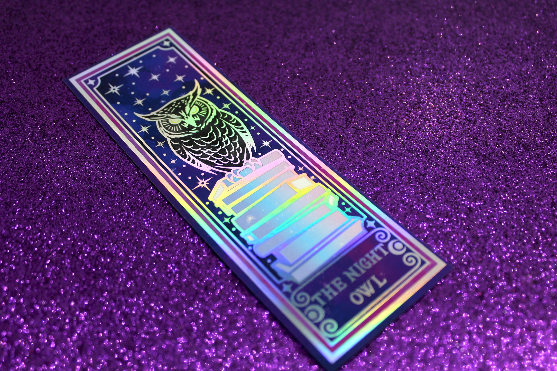 Tarot Night Owl Holographic Bookmark | Double-Sided Foil Bookmark | Celestial Bookshelf Gift for Book Lovers & Tarot Fans