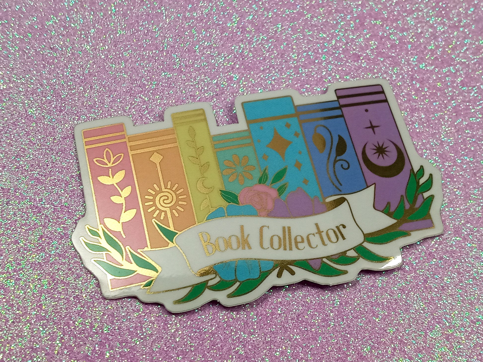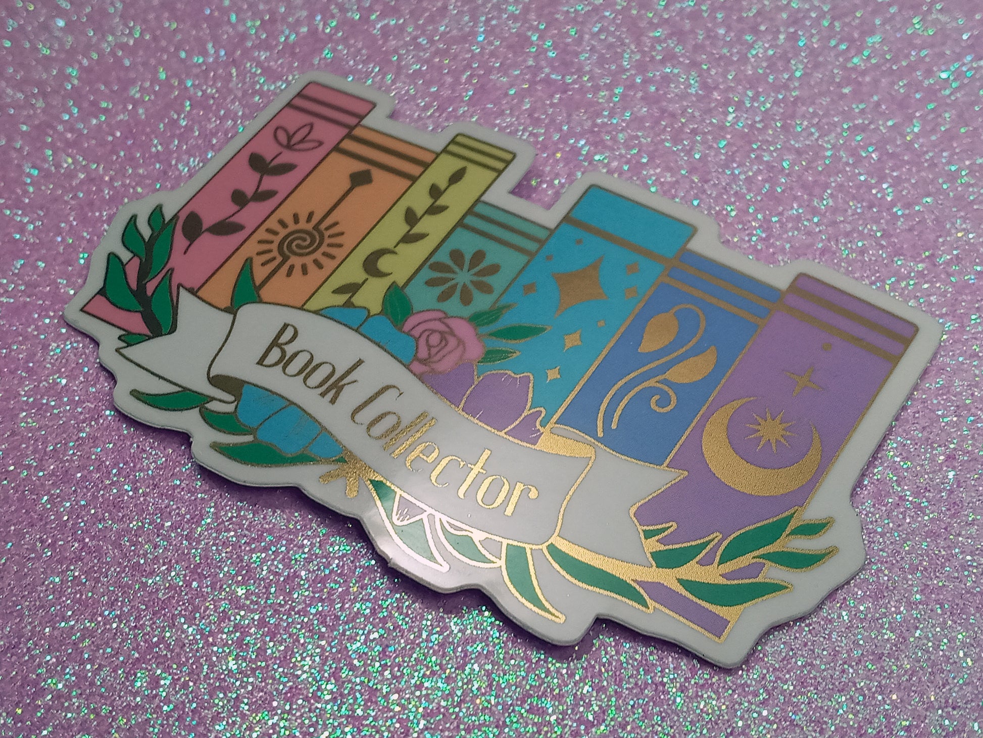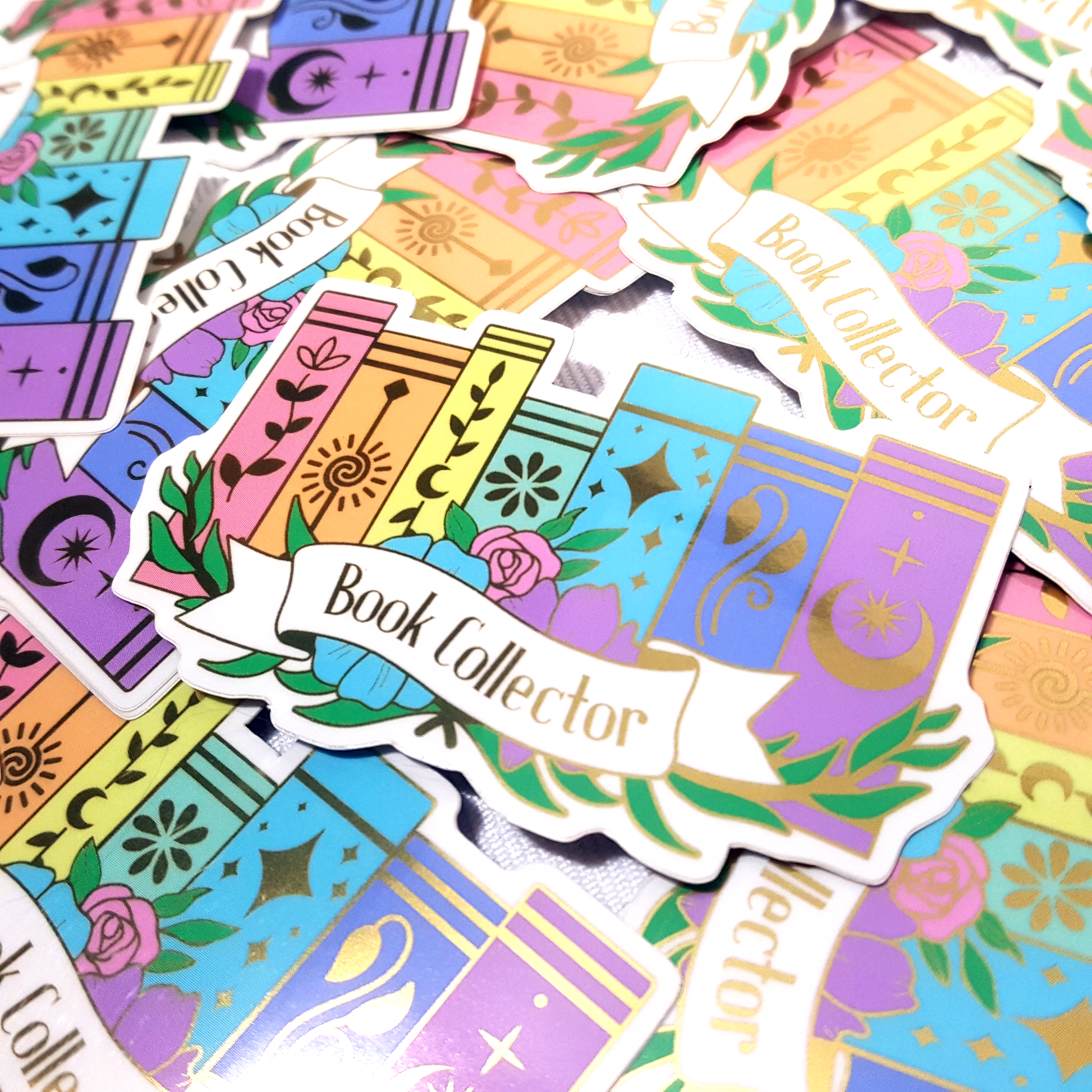Celebrate your love for stories and beautiful books with this Book Collector mirror vinyl sticker! With shiny mirror gold accents, this waterproof sticker is the perfect accessory for readers who proudly collect their next favorite read.