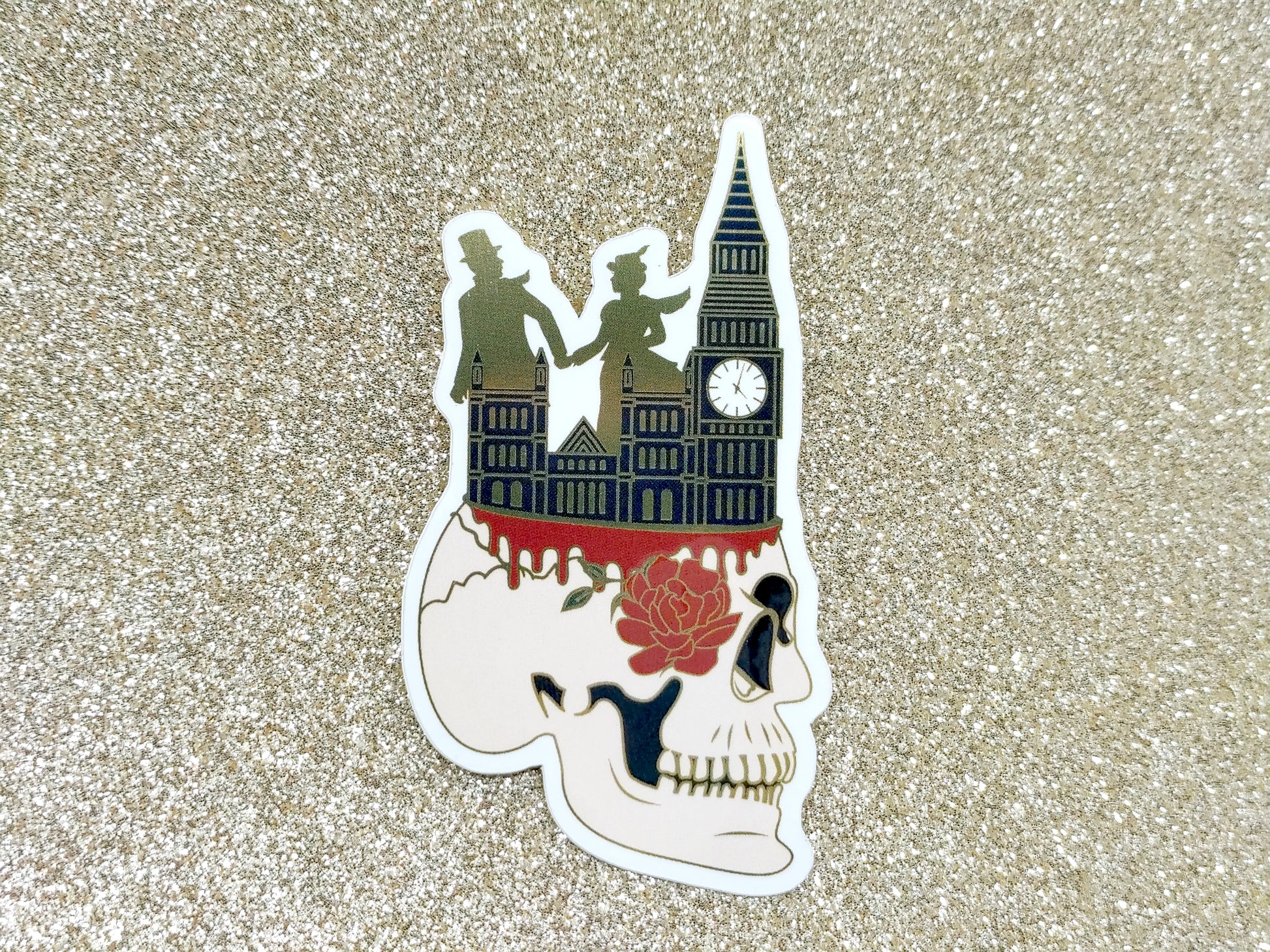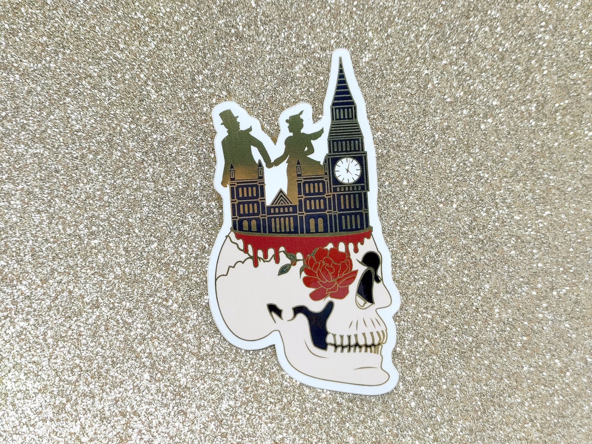 Show off your love for Stalking Jack the Ripper by Kerri Maniscalco with this stunning mirror-effect vinyl sticker! Featuring intricate details and a gold metallic shine, this waterproof sticker is a stylish way to personalize your favorite items.