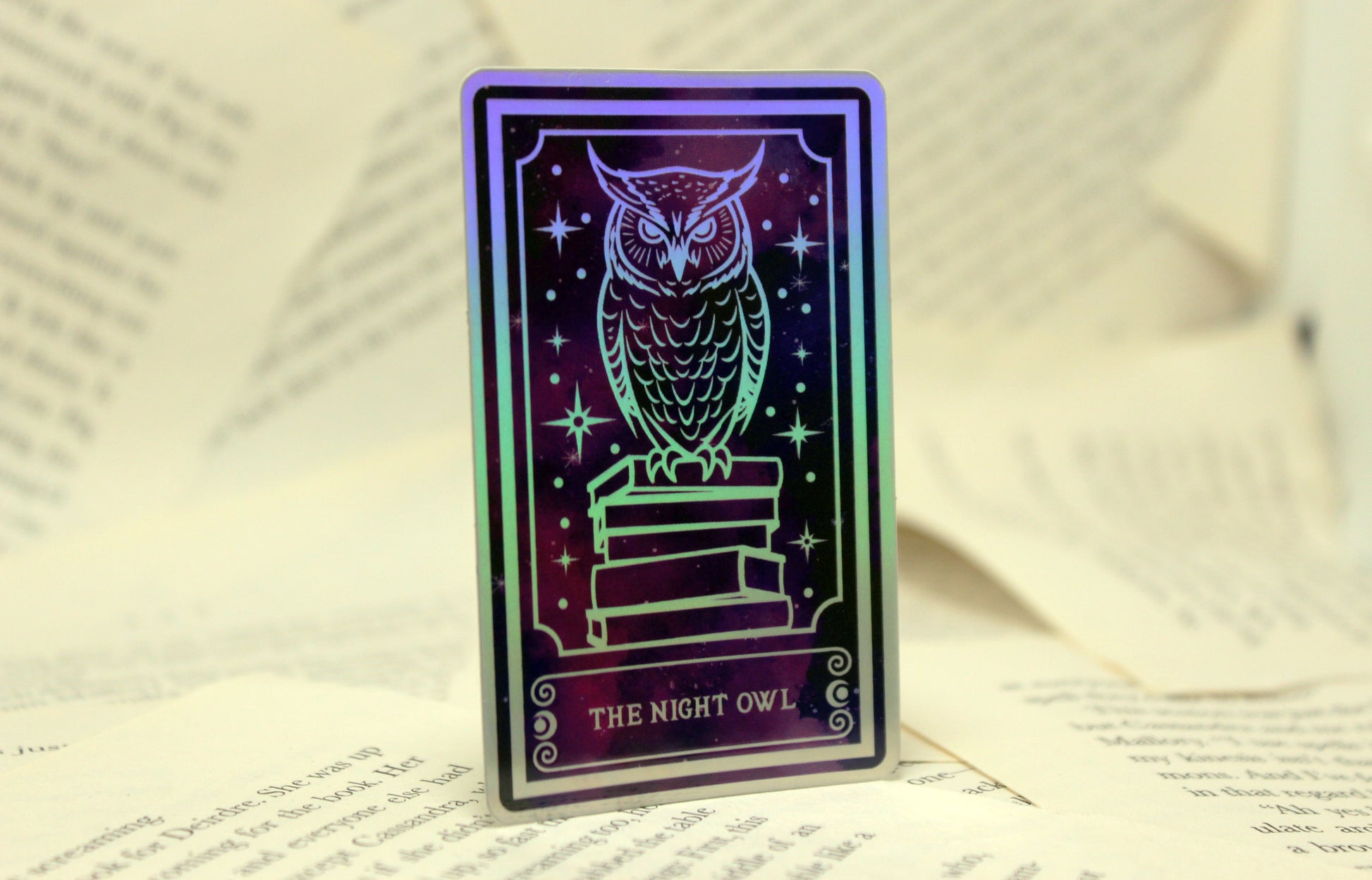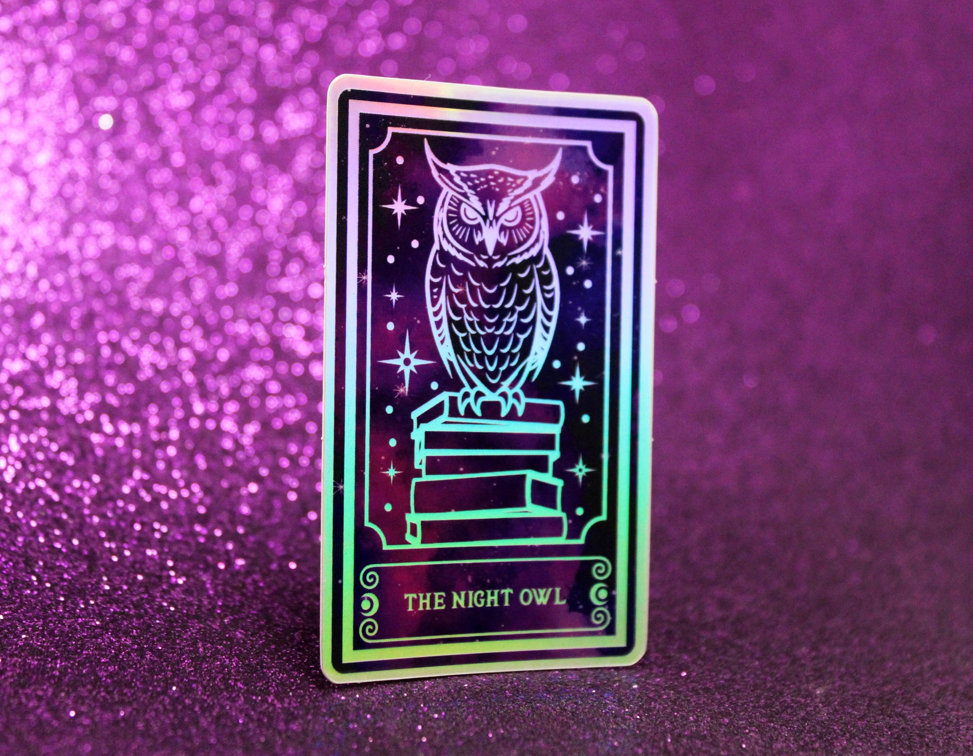Holographic Owl Tarot Sticker 'The Night Owl' – Book Lover Vinyl Decal