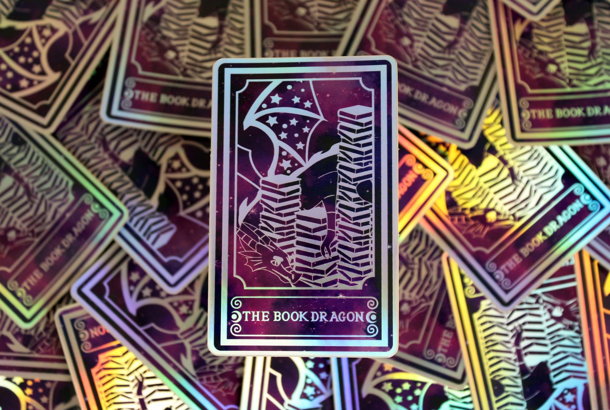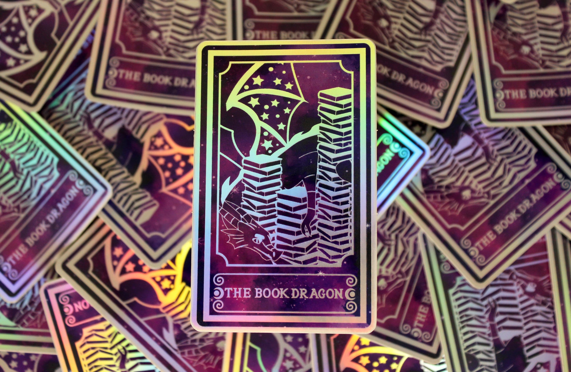 Holographic Dragon Tarot Sticker 'The Book Dragon' – Book Lover Vinyl Decal