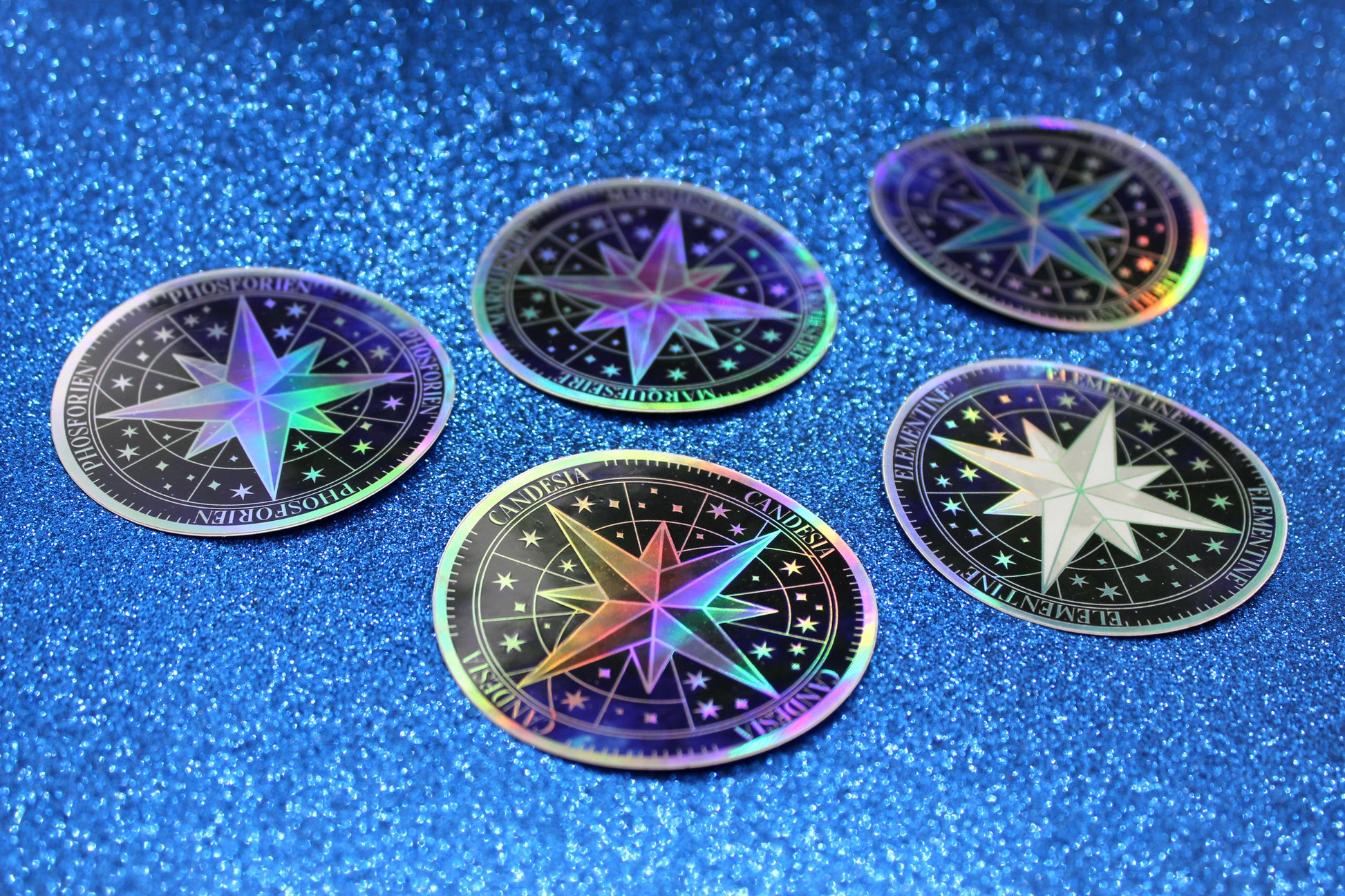 Each sticker represents one of the mysterious stars from Shannon Messenger’s beloved fantasy series. The design features vibrant colors, bold celestial detail, and a mesmerizing holographic finish that catches the light beautifully.