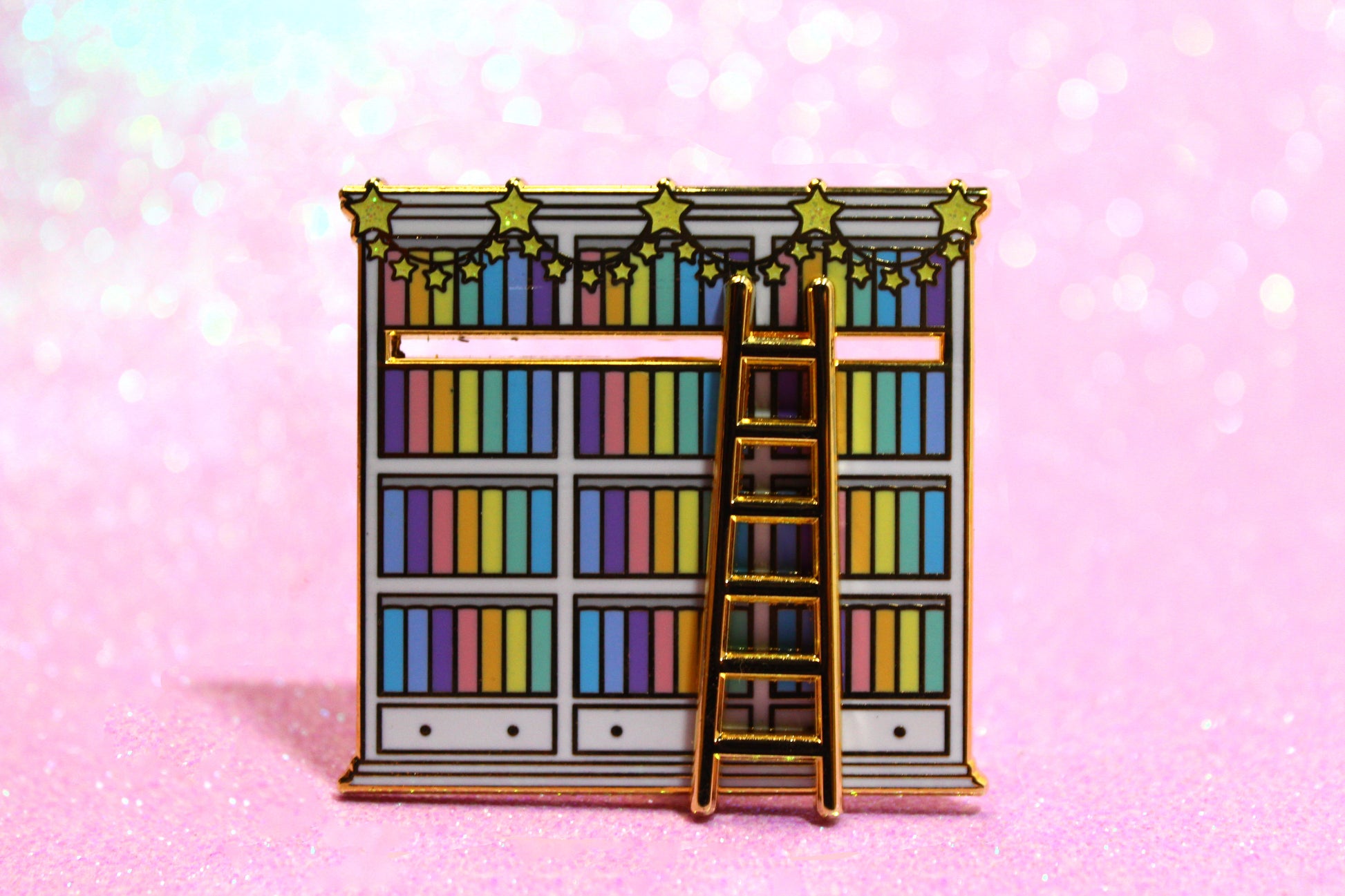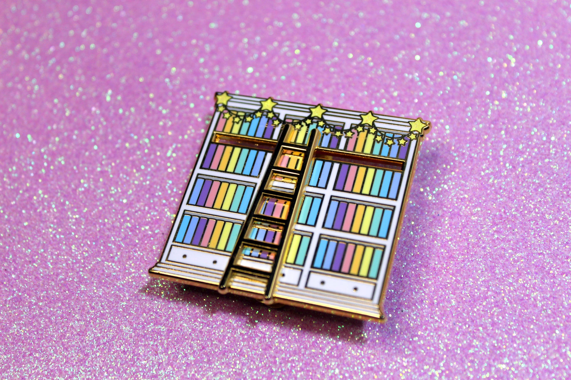 Show proudly your love for books with this rainbow bookshelf sliding enamel pin in pastel colors. Perfect gift for any bibliophile!