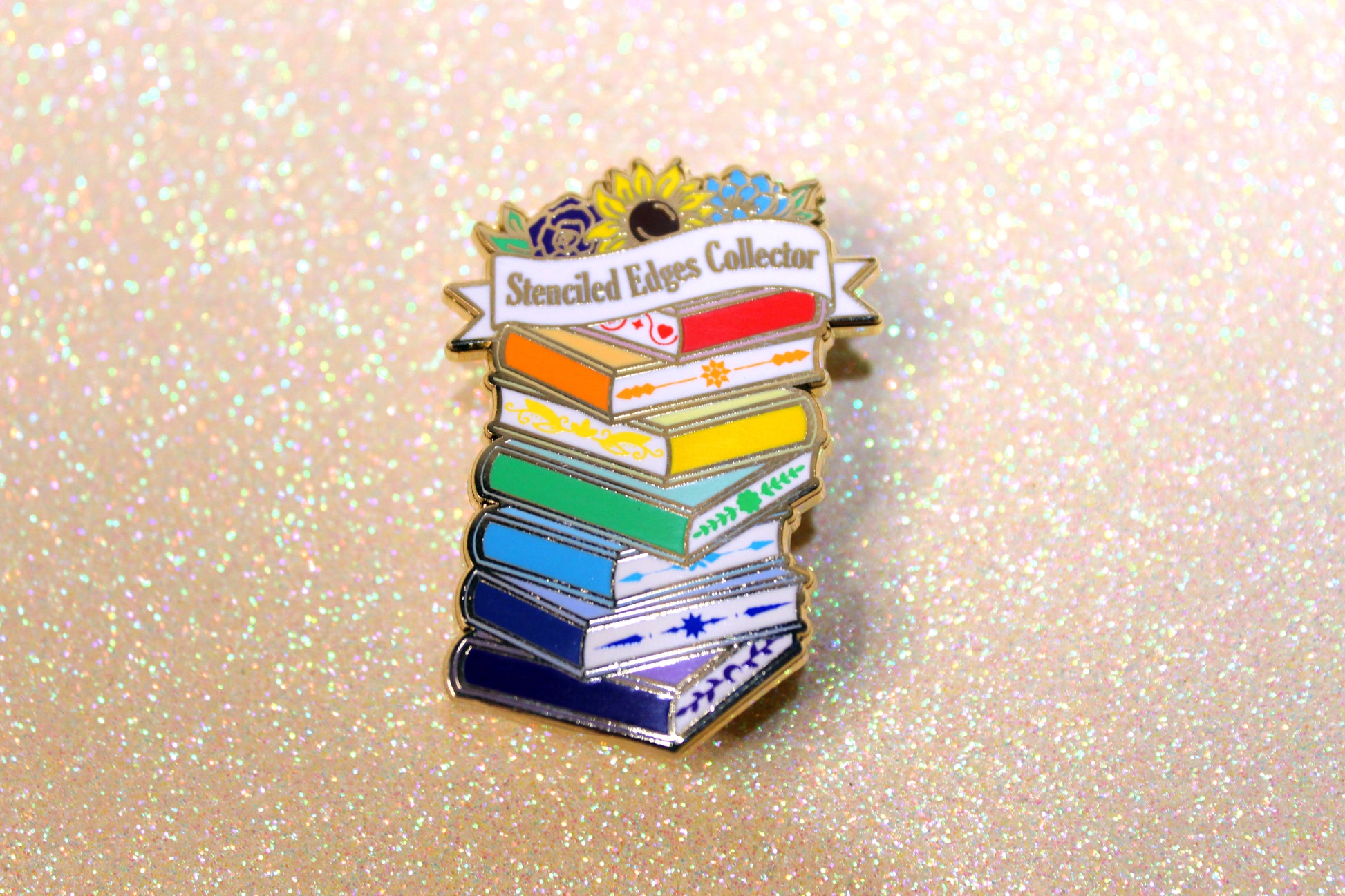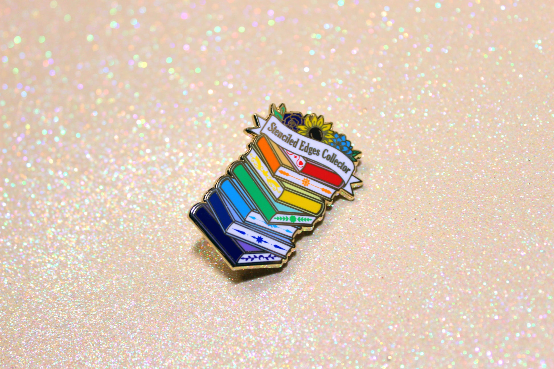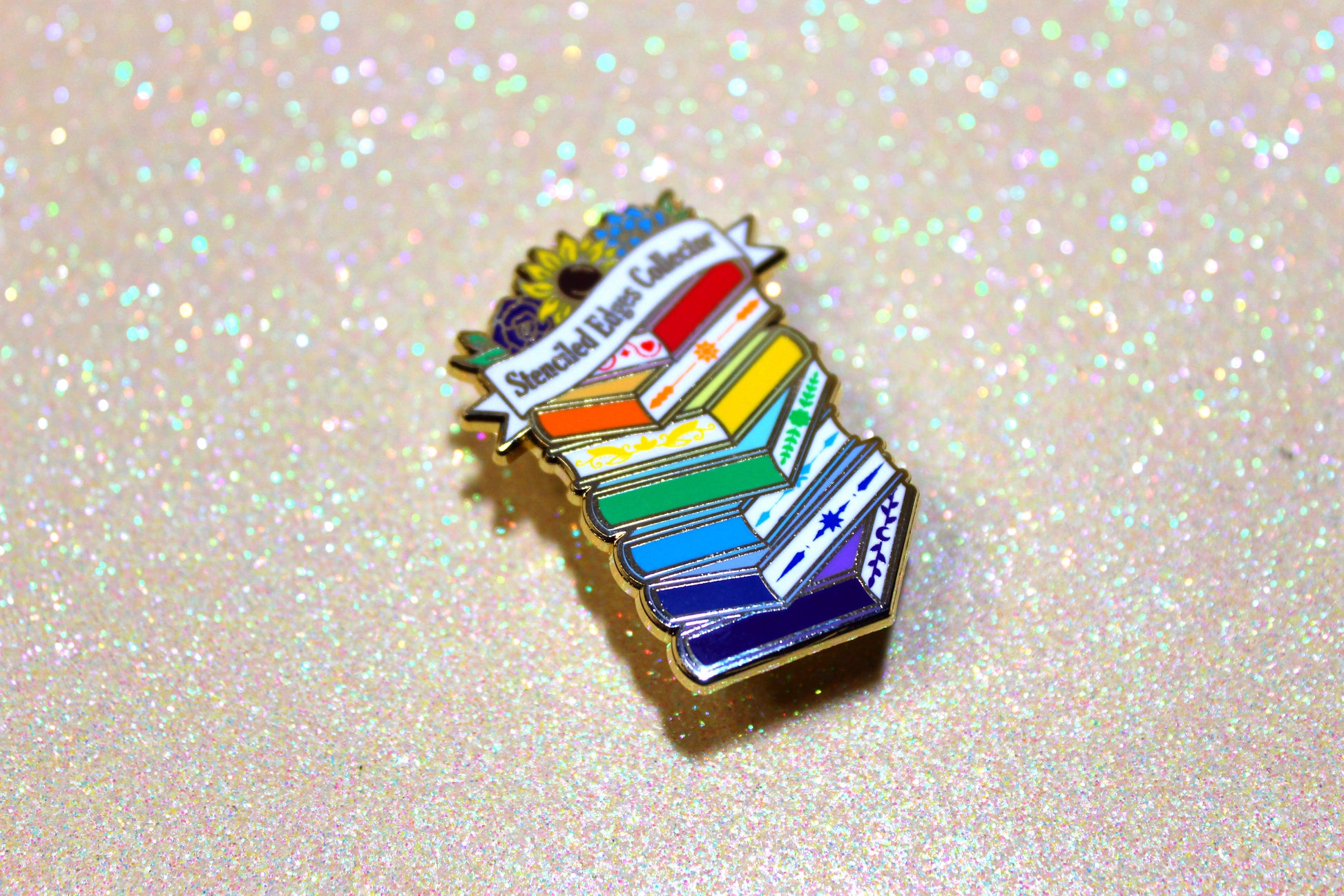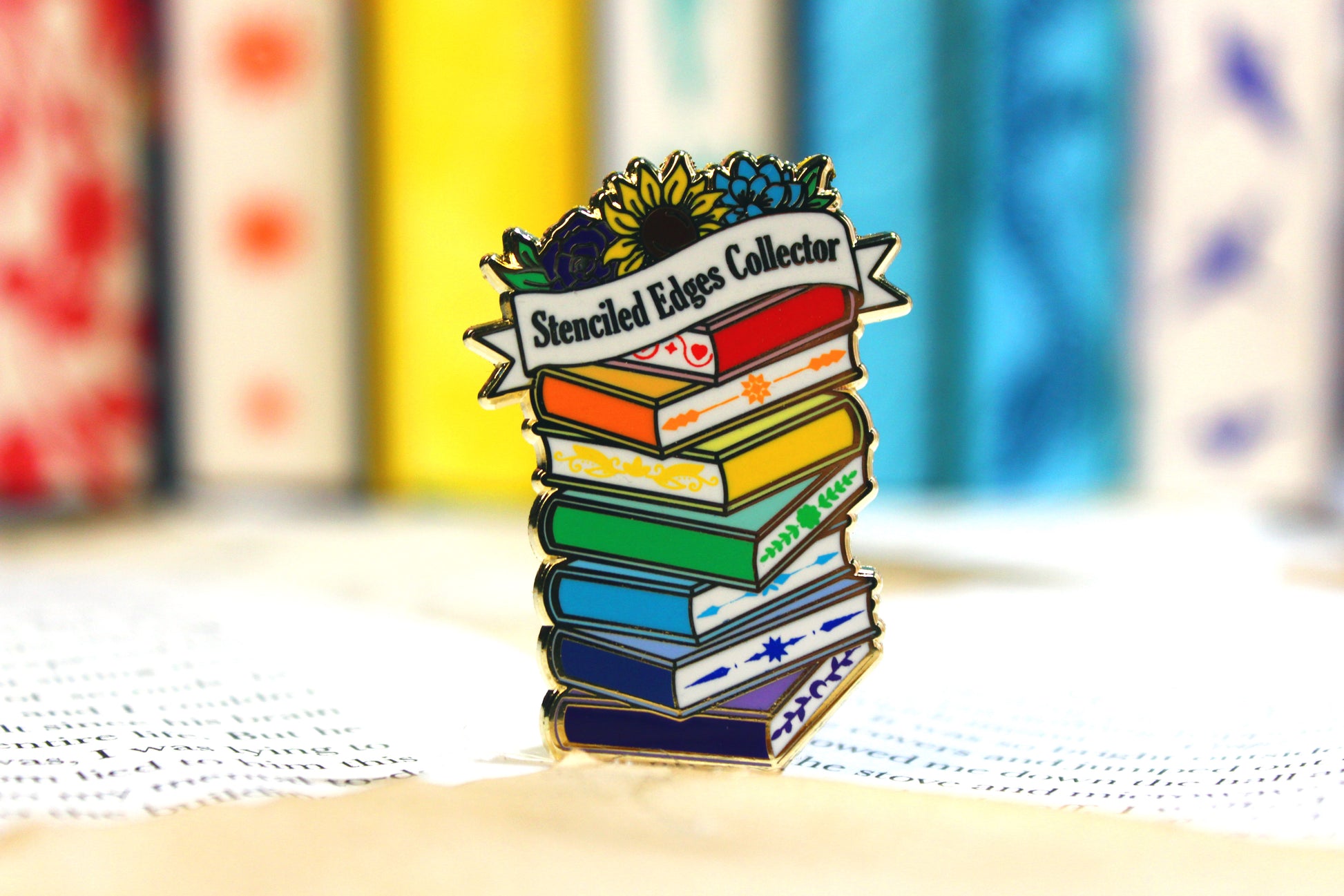 Show proudly your love for books with stenciled edges with this stencil edges enamel pin in rainbow colors. Perfect gift for any bibliophile!