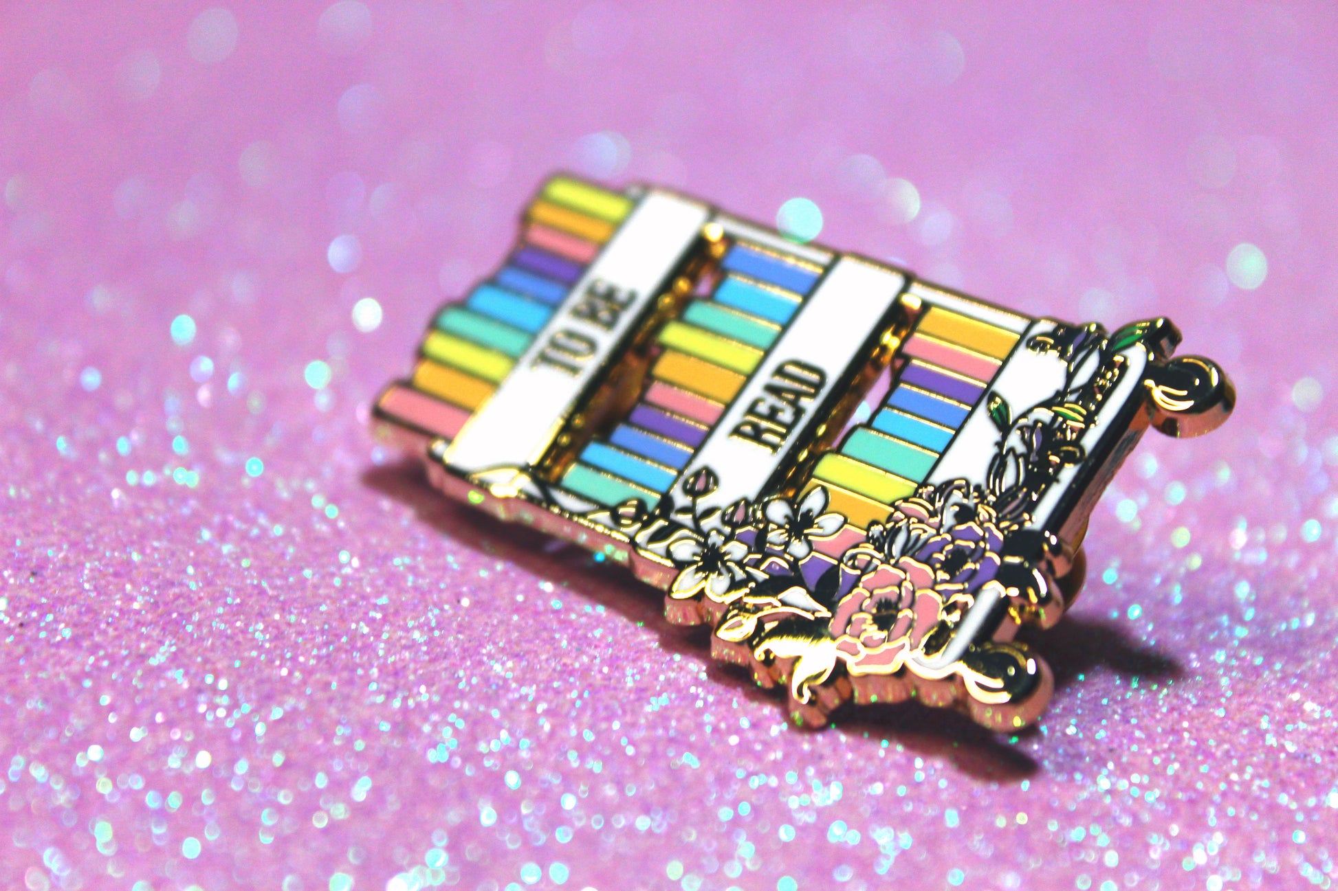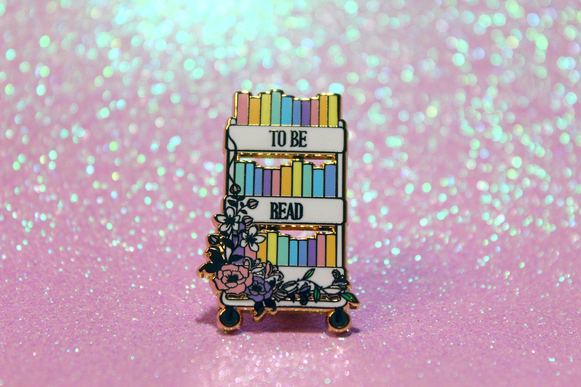 Show proudly your love for books with this TBR Cart enamel pin in pastel colors. Perfect gift for any bibliophile!