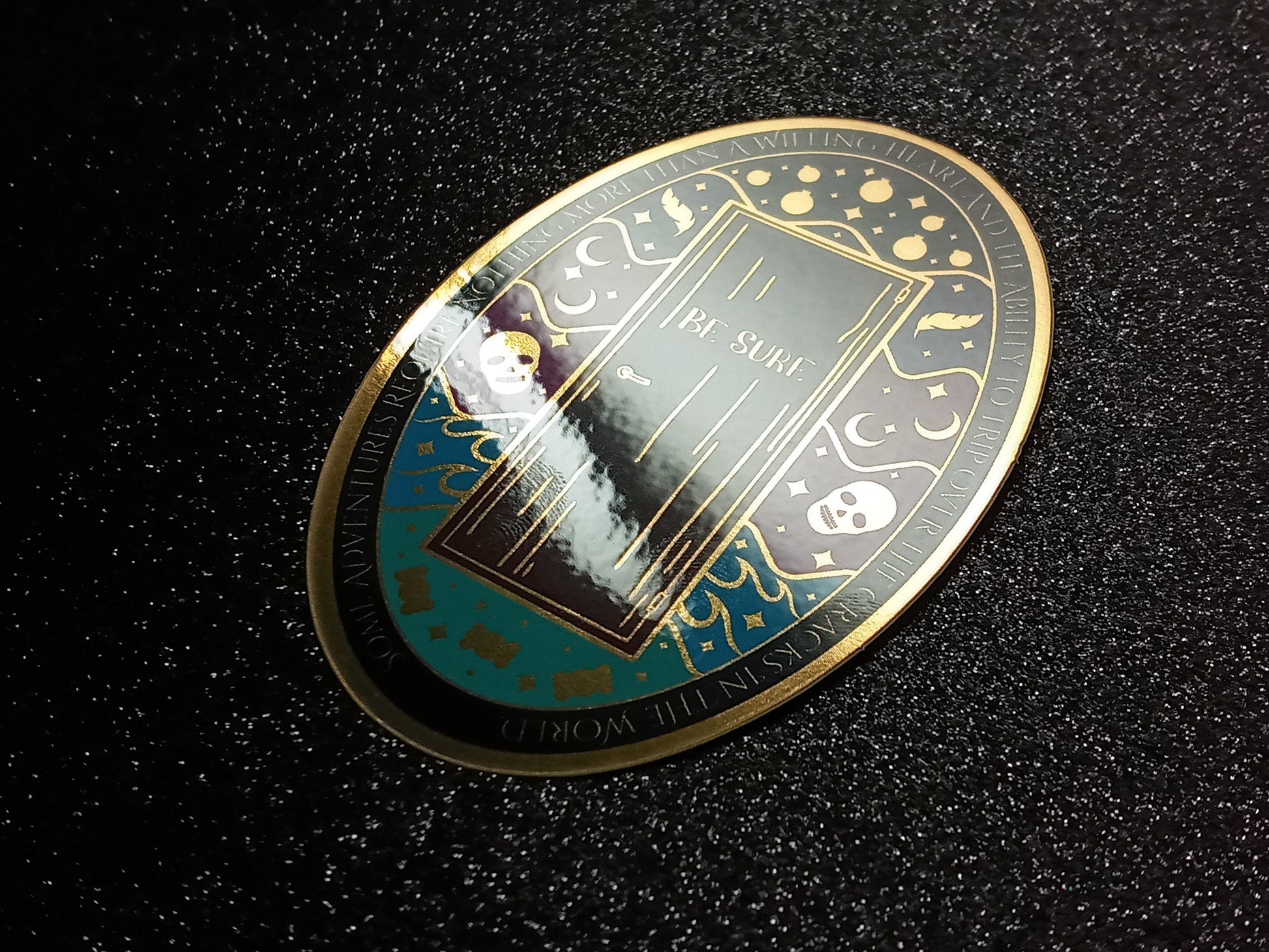 Shiny waterproof sticker with a mirror effect on the gold areas, whichs makes it extra shiny. Perfect for laptops, water bottles and stick to most surfaces.